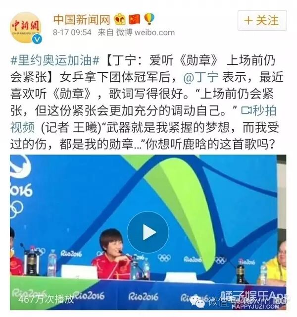 今年央视新闻在回顾奥运会夺冠瞬间时,放了一整首《勋章》做背影音乐。