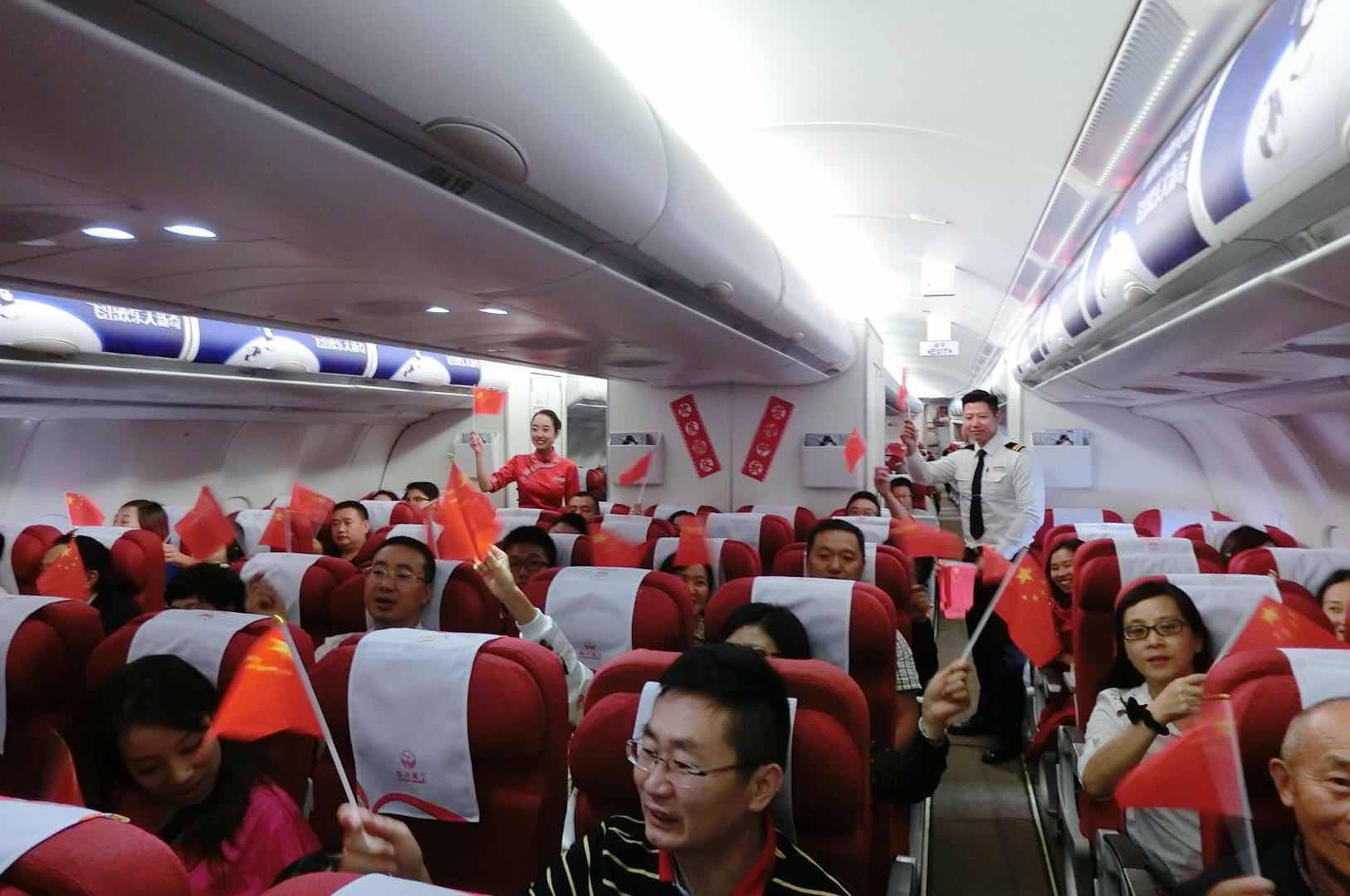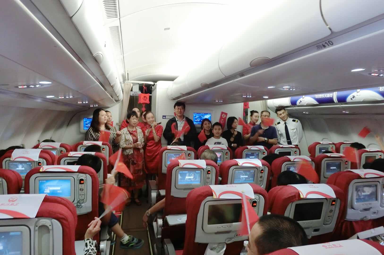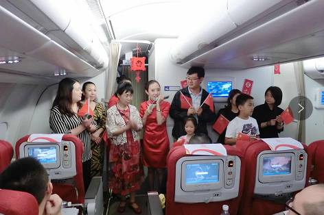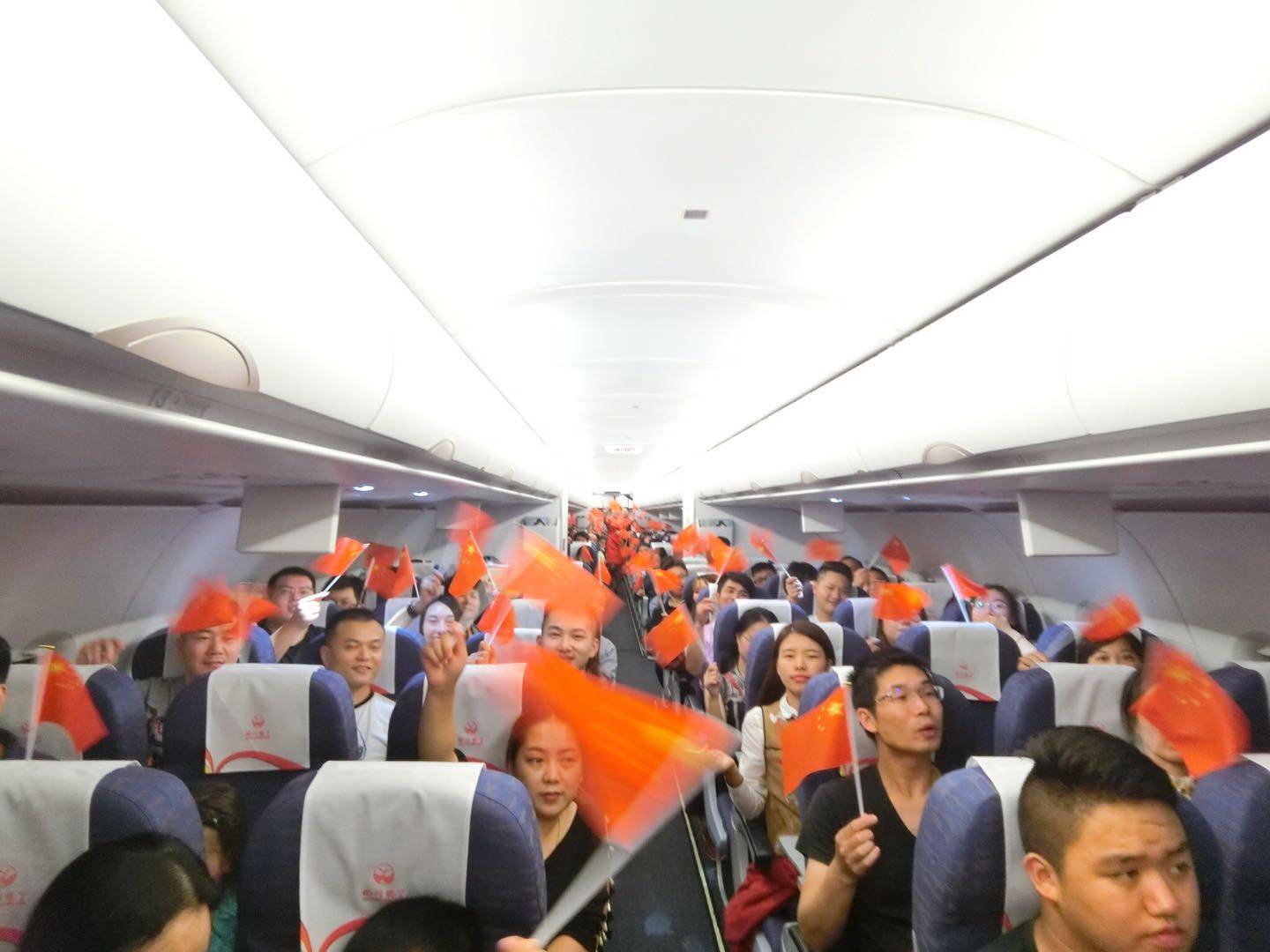 踏着红红火火的国庆色彩伴着我的祖国歌声,旅客们哼着小曲儿上了客舱.....
