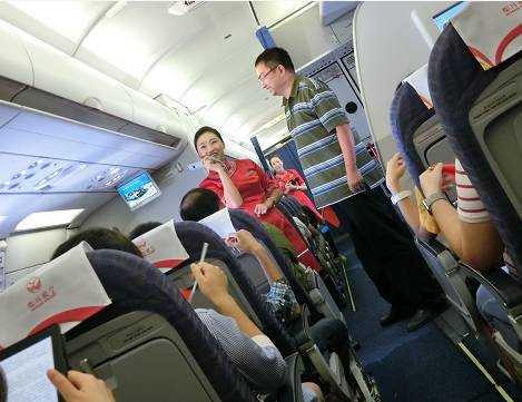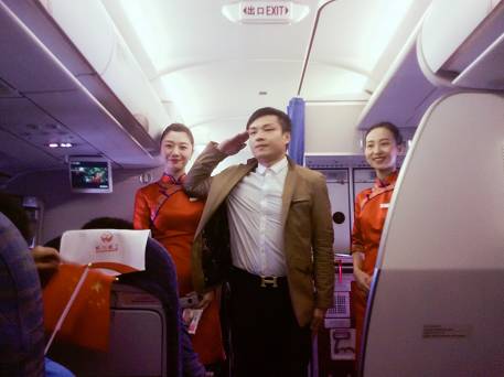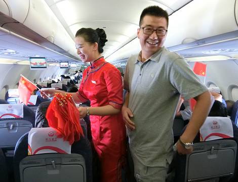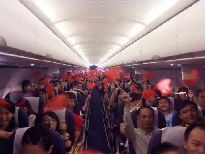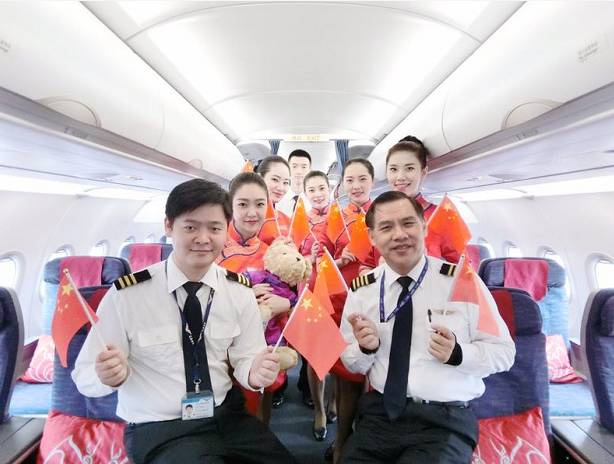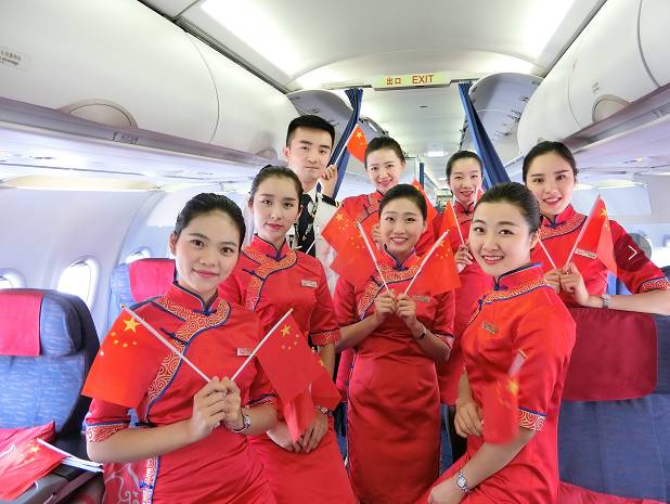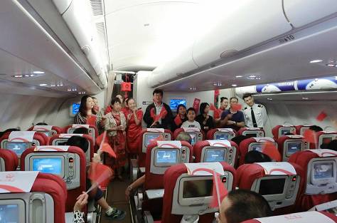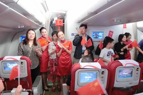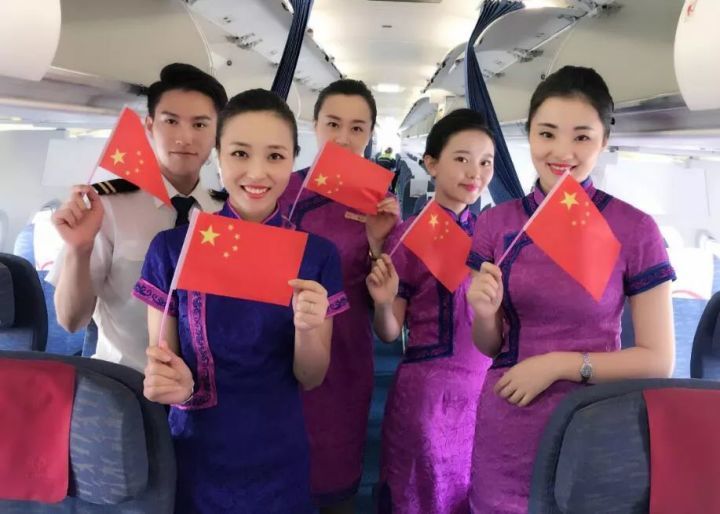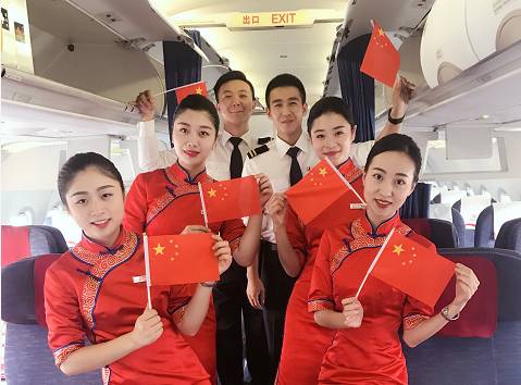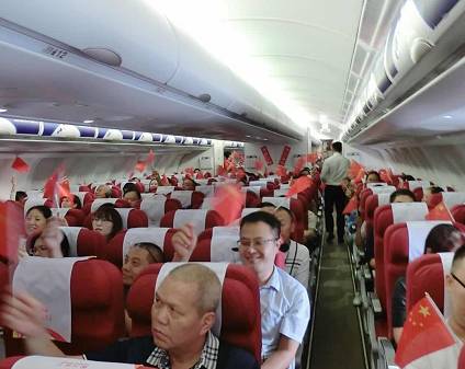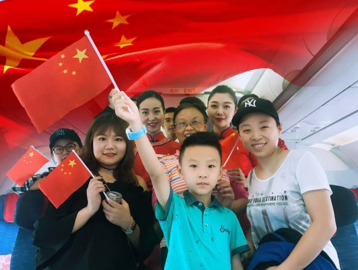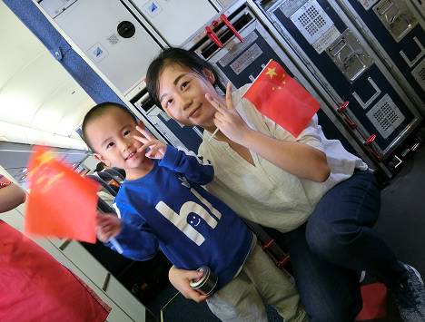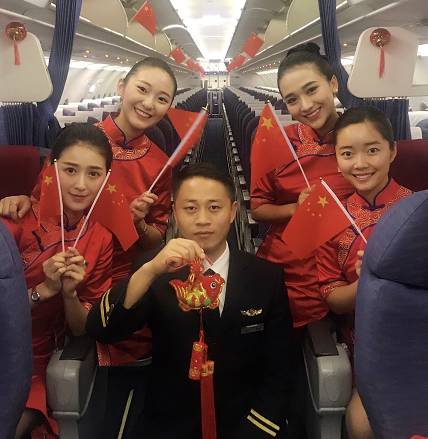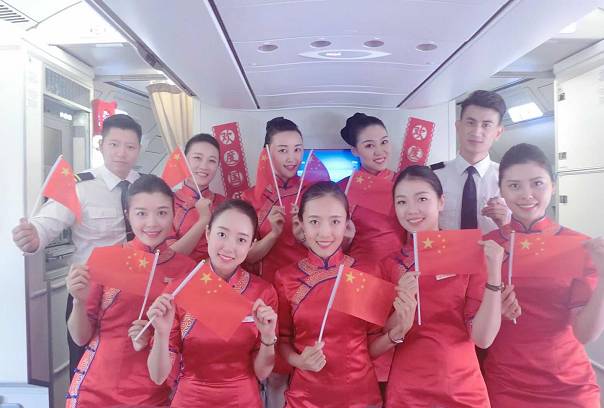 踏着红红火火的国庆色彩伴着我的祖国歌声,旅客们哼着小曲儿上了客舱.....