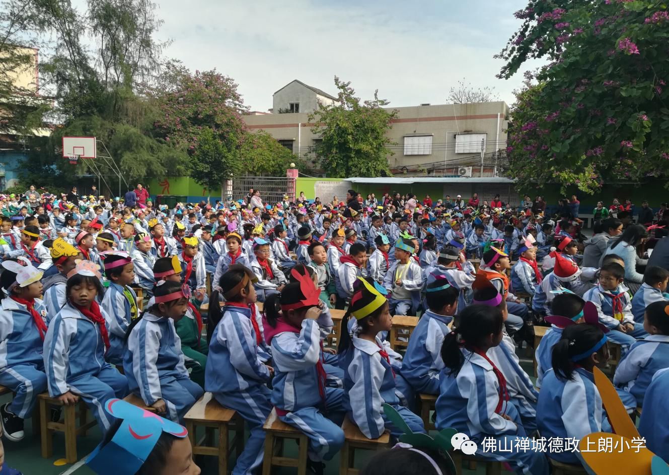 下午2:30,在三位可爱的主持人精彩的展现下拉开了序幕,全体师生与家长一起观看了比赛。比赛现场,每个班级都非常卖力的表演。参赛的同学个个头上都戴着与自己父母一起制作的精美头饰,着装统一、干净整洁,神情从容自信。