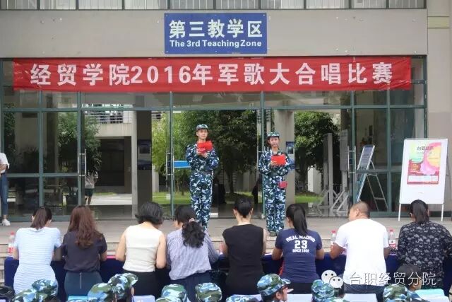 为丰富大一新生军训生活,增强团队凝聚力,营造积极向上的军营氛围。今天下午,经贸学院举行了2016级新生军歌大合唱比赛。出席的嘉宾评委有:经贸学院辅导员海鹏洋老师、辅导员潘秀秀老师以及辅导员彭鑫艳老师等。新生大合唱不仅是我院新生入学工作的汇报重点,更是为新生们提供了青春热血的舞台。此次大合唱曲目在选择上以军歌为主,在大一新生入校之初对其进行爱国主义、民族主义和集体主义的生动教育,比赛中各班表现良好,以统一的着装,井然有序的队列让大家眼前一亮,同时声亮、音准、歌美做到了情感表达到位,极富艺术感染力。通过大合唱比赛的进行,不仅极大的调动了同学们的参赛热情,充分表达大家对祖国的热爱,更是培养了大家的团队合作意识和集体荣誉感,为系部添光添彩。恭喜经贸十一连商英1634班夺得第一名的好成绩,这与大家背后辛勤的付出密不可分,让我们再一次,向合唱队员们表示祝贺!也同样祝贺报关1631班和国贸1633班分别荣获第二、第三名的好成绩!获得优秀奖的班级有:国贸1631班、国贸1632班和商英1632班!再次祝贺你们!军旗飘飘,军徽闪亮。悠扬的歌声飘扬在整个三教,激荡的旋律萦绕在经贸学院上空。各参赛队伍用青春的歌喉唱出了对伟大祖国文明富强的美好向往,抒发了全体参训学生深切的家国情怀。加油!坚持住!正在咬着牙、不放弃军训的你们都是最棒的!