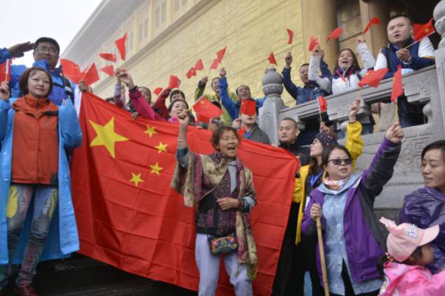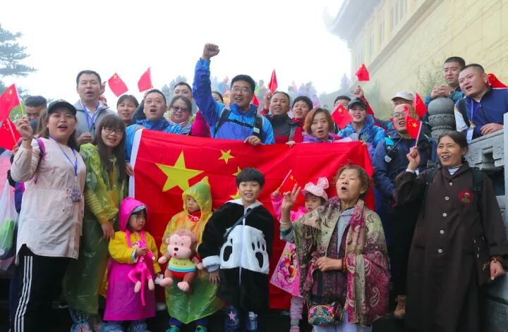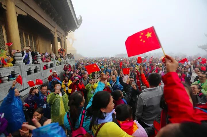 ,胜利歌声多么响亮;歌唱我们亲爱的祖国,从今走向繁荣富强......”10月3日中午,峨眉山景区金顶上歌声嘹亮,一群游客挥舞着国旗,用一首《歌唱祖国》大合唱为祖国庆生。