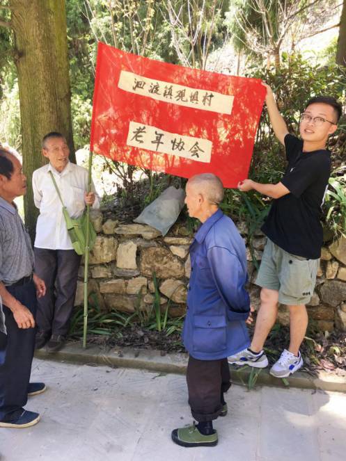 在半山腰,我团寻访了泗渡镇观坝村老年协会的老人们,了解到他们已在山腰义务指引游客多年。
