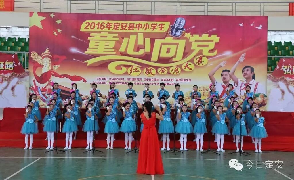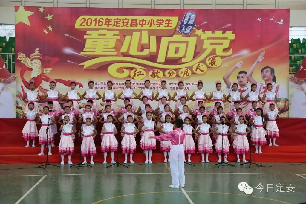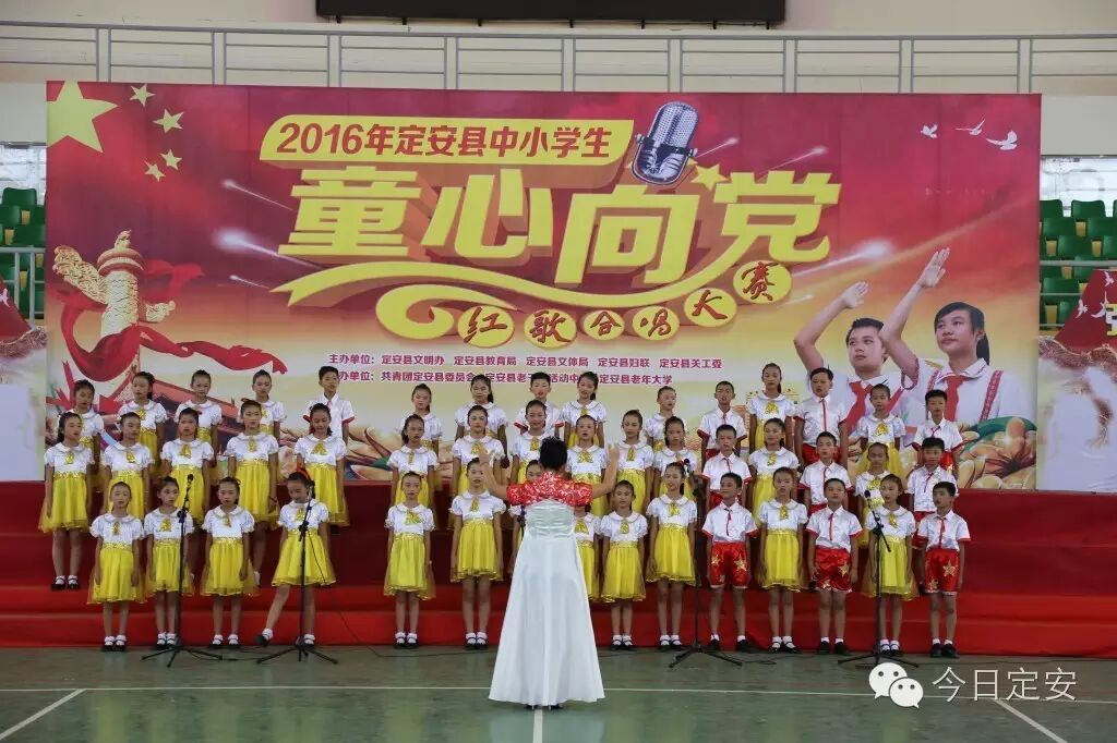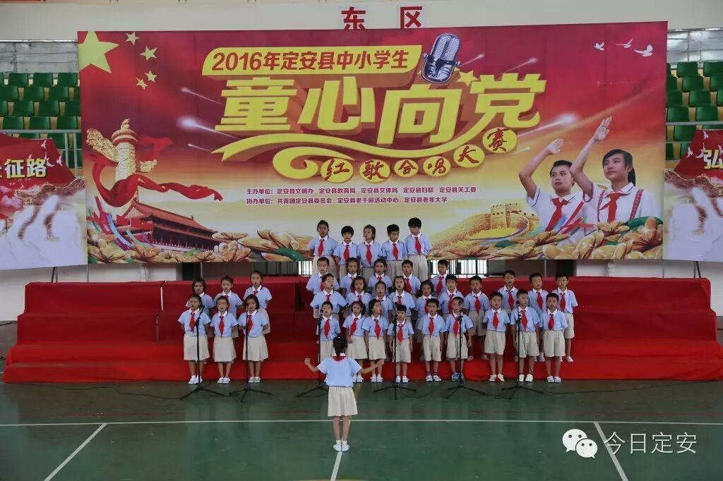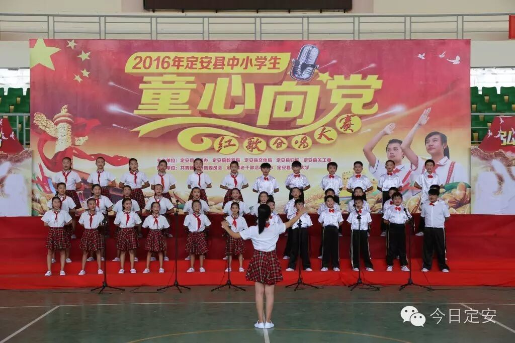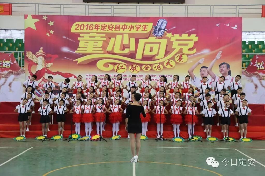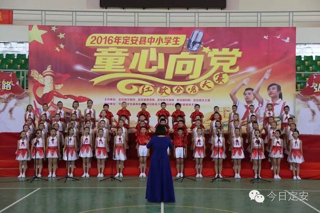 11月1日下午,2016年定安县中小学生“童心向党”红歌合唱大赛在县体育馆举行,来自定安一小、黄竹镇中心小学、仙沟思源学校等全县22所小学代表队参赛,用美丽的歌声歌唱祖国。