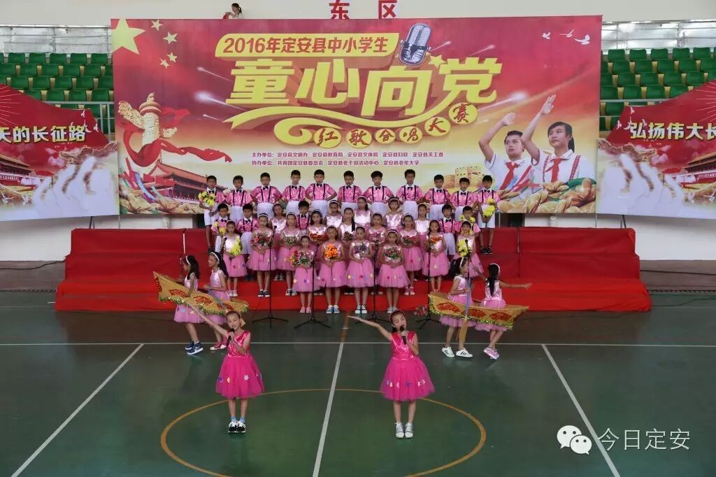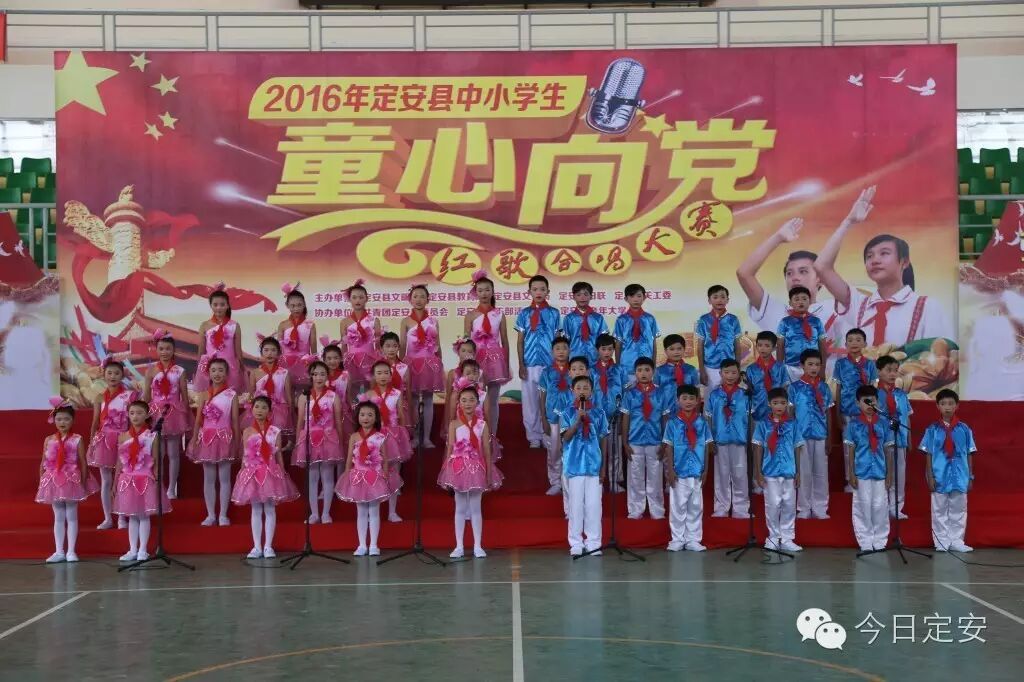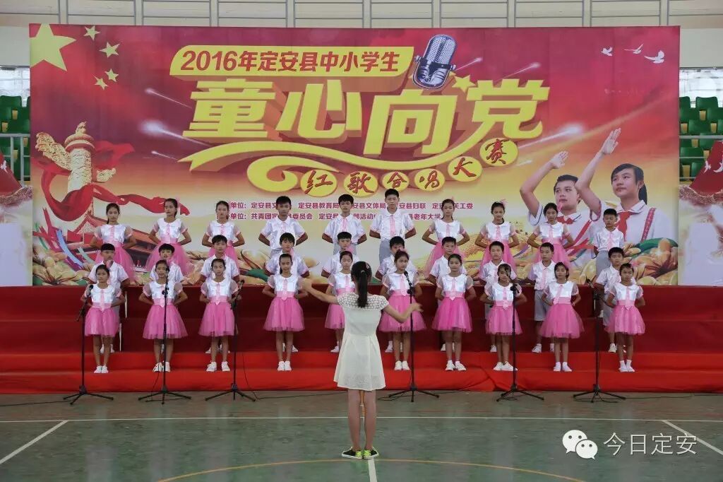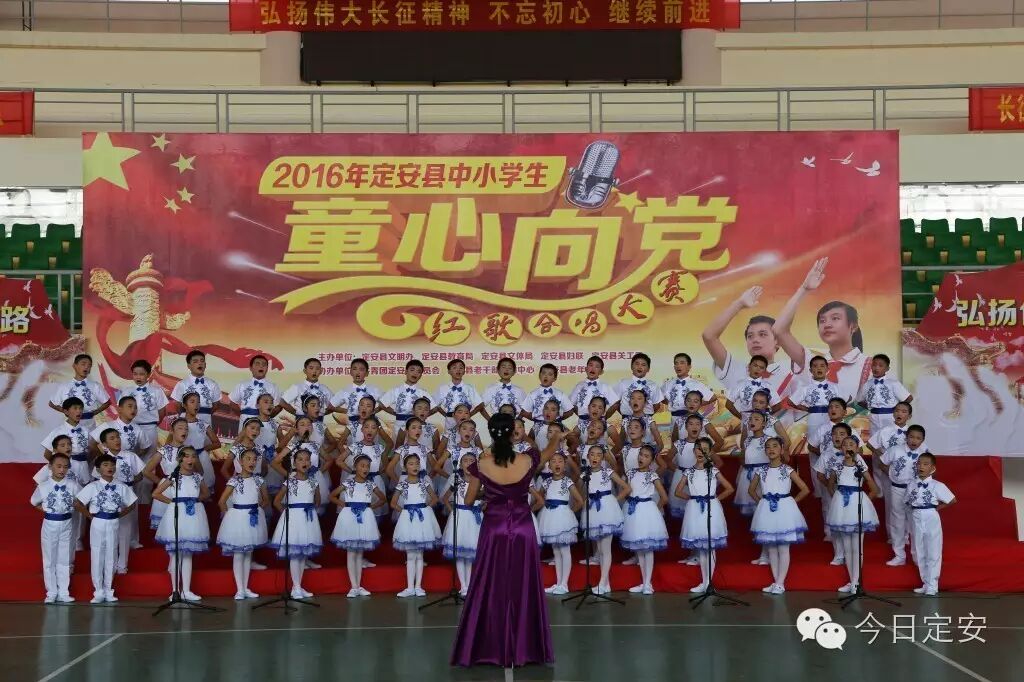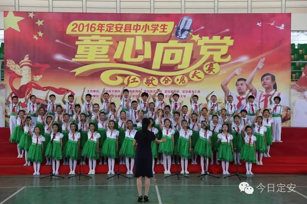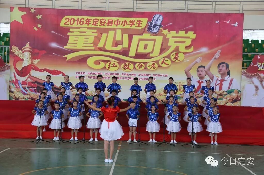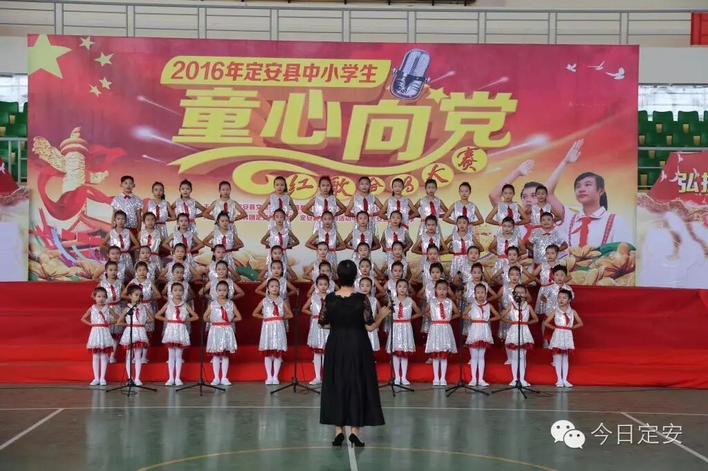 11月1日下午,2016年定安县中小学生“童心向党”红歌合唱大赛在县体育馆举行,来自定安一小、黄竹镇中心小学、仙沟思源学校等全县22所小学代表队参赛,用美丽的歌声歌唱祖国。
