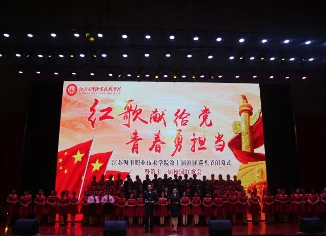 我校组织举行的红歌合唱大赛,由各个学院参加。