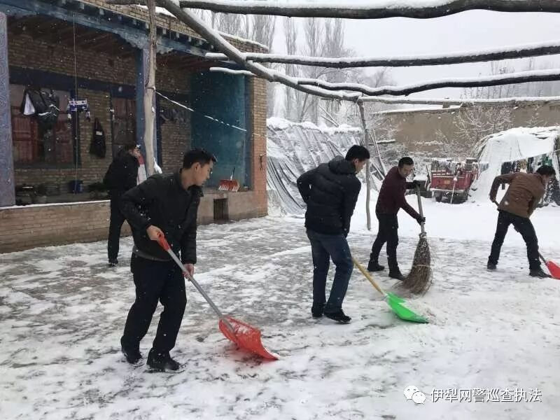驻村工作接近尾声,似乎老天也觉得还需加点儿什么来增添气氛,一大早就下起了鹅毛大雪,驻村民警们有些激动,终于能帮亲戚干点儿体力活了,可以好好舒展下筋骨!早上村子里充斥着乒乒乓乓的扫雪声,仿佛一出交响乐,在为我们的结亲活动伴奏,民警们同亲戚的身影穿梭其中,融洽非常!