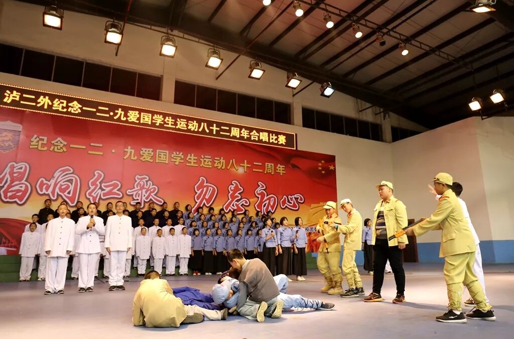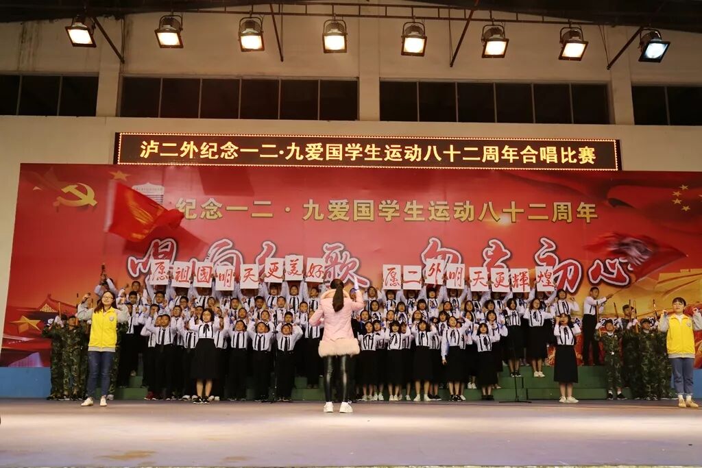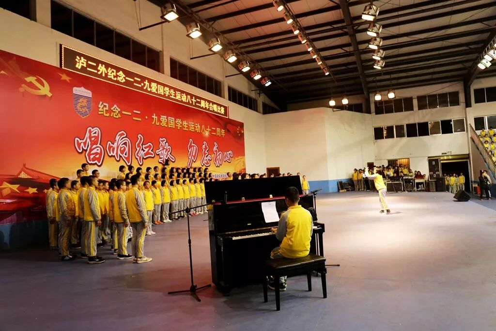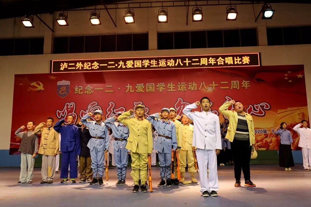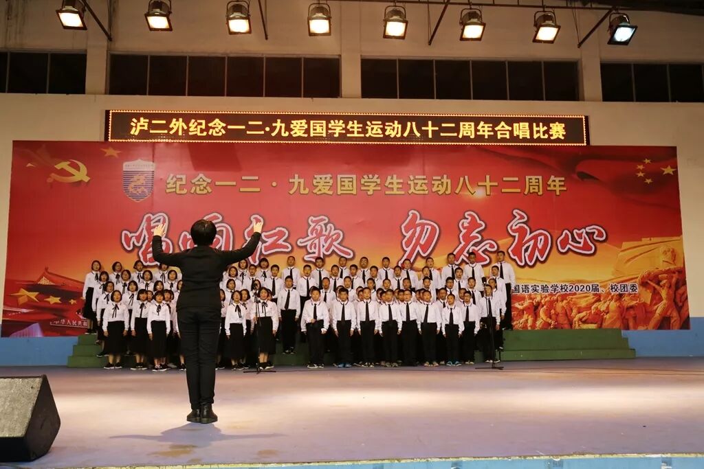 12月9日,正值“一二·九”学生爱国运动82周年纪念日,泸二外在体育馆举办纪念“一二·九”运动八十二周年“唱响红歌,勿忘初心”合唱比赛,2020届全体学生参与了此次比赛。出席本次比赛的评委嘉宾包括副校长谭强老师,副校长周雪峰老师,副校长代自强老师,副校长王乾平老师,年级主任李刚明老师,钟远福老师,杨川老师;年级教学主任程坤全老师,艺体处副主任彭海老师,校团委干部辛艳娜老师。