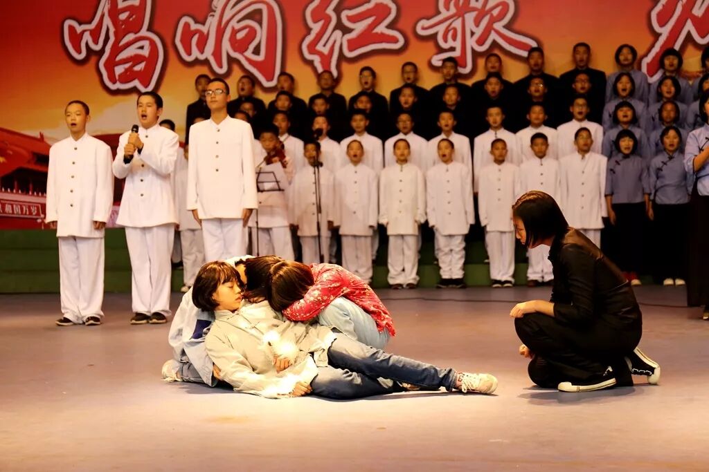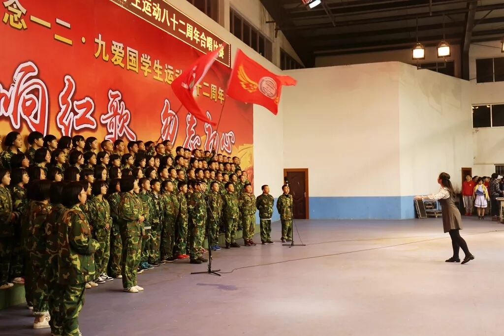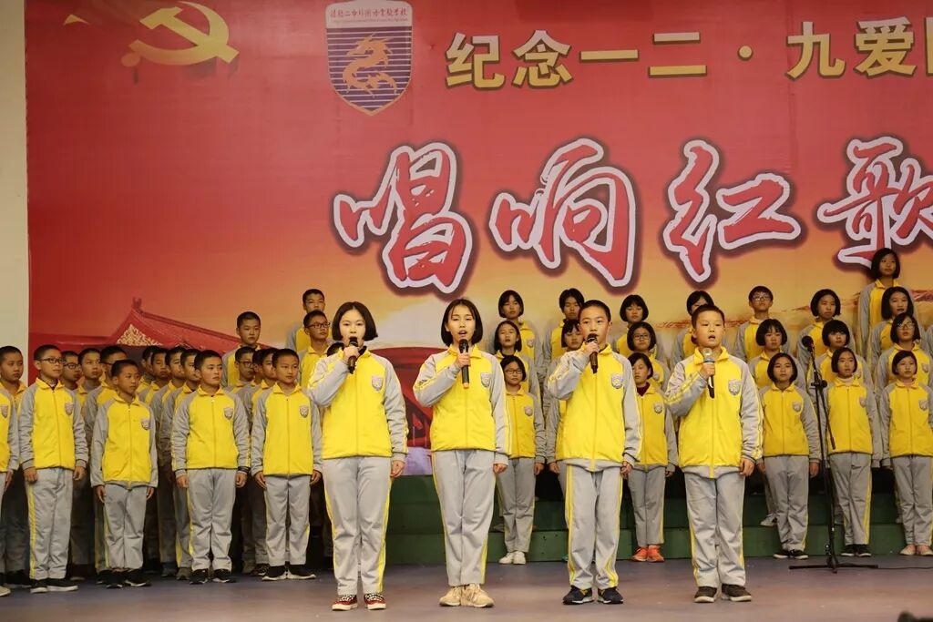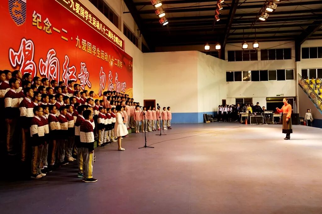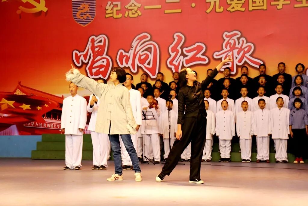 各班有序上场,节目创意无限,精彩纷呈:23班、24班别具一格情景剧,11班、12班表现亮眼的独唱,7班、8班铿锵有力的朗诵……还有很多老师参与到学生的合唱当中,让纪念活动显得隆重而特别。伴随着一首首激昂优美的歌曲,我们一起重温了中华民族前进的足迹。最后,5班、6班带来的合唱《红旗飘飘》《水手》为活动划上了圆满的句号。