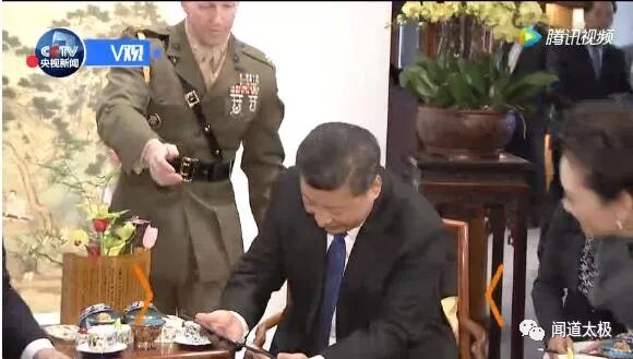 和夫人在故宫博物院迎接来华进行国事访问的美国总统特朗普和夫人梅拉尼娅。两国元首夫妇在宝蕴楼简短茶叙时,。,称她是特朗普的骄傲,是中美友好的小使者。不得不说,基因真好!这么小就成中美外交小天使了!
