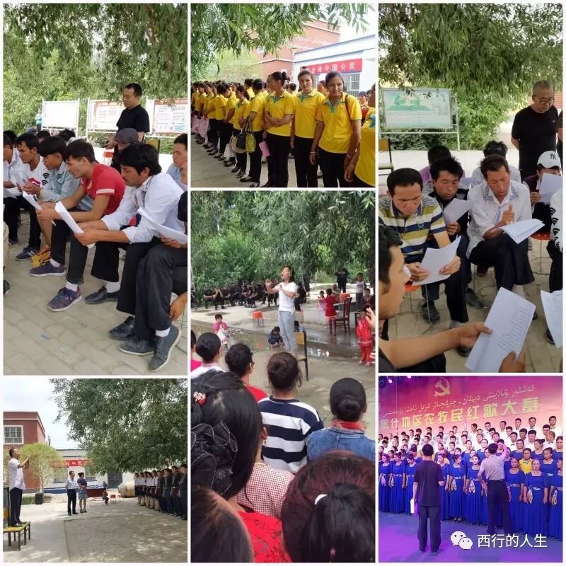 在片区红歌比赛的时候,我们村代表艾力西湖镇出征,又霸气十足地展现了实力。农民兄弟姐妹们精神昂扬,歌唱准确,吐字清晰,既表现了歌曲精神,又展现了汉语水平,被县委宣传部选拨出来,直接参加喀什地区比赛。比赛的人数也由50人扩充到150人。现在面临的任务更加艰巨了,同时眼前的道路也更加广阔了。