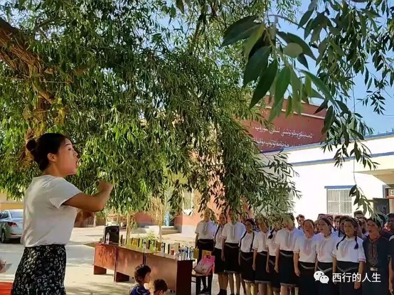 炎炎盛夏,浩浩雄心,我们开始厉兵秣马备战喀什大赛。每天在村委会大院古柳下面回荡着红色歌声。歌唱祖国,歌唱党,“宽广美丽的土地,是我们可爱的家乡”,流利的普通话,优美的旋律,从这些维吾尔青年男女口中唱出来,竟也舒展广阔,充满深情。我仔细观察了一下这些唱歌的农民,他(她)们看上去都很年轻,但都是孩子的父亲、母亲,刚刚成年就结婚成家了。青春的芳华还来不及绽放,就为人父母,进入人生下一阶段,不由让人嗟叹。眼下到了冲刺阶段,从早上到傍晚,每天都要强化训练。他们放下了自己家里的农活和牵挂,有的从打工工地回赶来,小媳妇带着孩子,老爷们儿牵着娃娃,还有几对是夫妻二人一起参加。有的孩子还幼小,放在推车里带到村委会柳树下面,听爸爸妈妈唱歌。有的孩子天天听自己的父母排练唱歌,自己都会唱了。看到这些,让人挺感动,又觉得不忍。亚雄自己买了些奶粉、糖果,送给那些年轻的父母和孩子,聊表心意。酷暑热天,树荫底下,这些青年男女们一字一句地咬文嚼字,一音一符地校正音律,像小学生一样认真执着。听说要到喀什比赛,大家兴奋异常,要去大城市了!有的人连莎车县城都很少去,不要说去喀什市了,合唱队要完成他们的夙愿,带给他们光荣和梦想······就这样,我们在一起耕种着心灵的田野,改变着粗糙的审美世界,开拓着一方新天地,让新时代的潮流浸润古老的土地。
