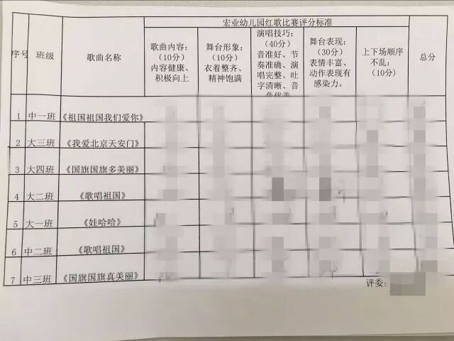 经过我们园方和家委会的评分,去掉一个最高分一个最低分,最终选出获奖的班级