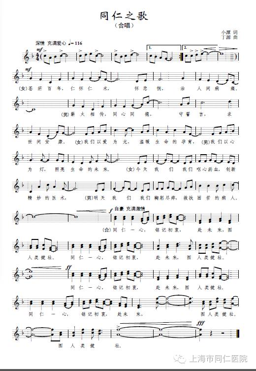 今年是我们伟大的中国95周年的华诞,也是同仁医院建院150周年的院庆之年。 全院职工将传唱新作——《同仁之歌》,用嘹亮的歌声和昂扬的精神,抒发同仁人的爱国、爱党、爱院情怀。《同仁院歌》歌词简洁明快,真挚深情,直抒胸臆;曲调亲切热情,旋律优美,朗朗上口。