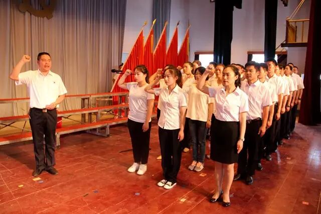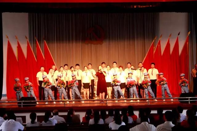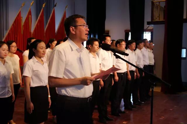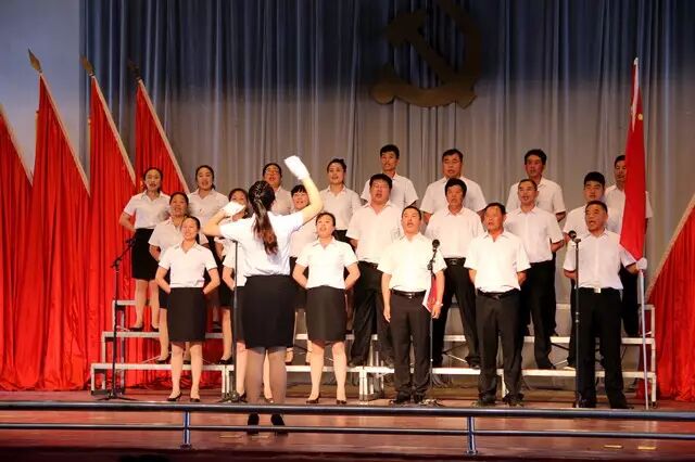 合唱比赛正式开始之前,,在鲜红的党旗下进行入党宣誓,用庄严的忠诚誓言庆祝党的生日,铿锵有力的誓词抒发了党员的忠诚与担当、团结与奉献、责任与使命。