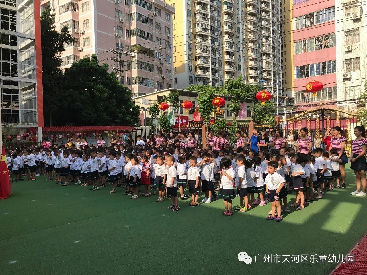 哎呦!现场气氛不错哦!老师和宝贝们手拿小国旗,可见是如此的开心,骄傲和自豪!