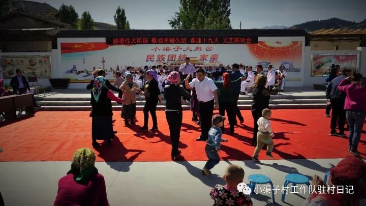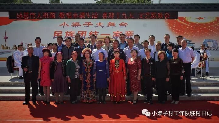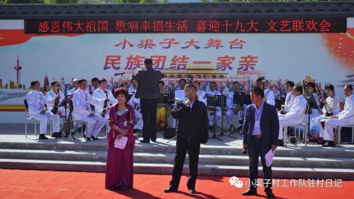 9月19日, 自治区“访惠聚”驻小渠子村工作队在乡村大舞台举办了一场以“感恩伟大祖国,歌唱幸福生活,喜迎十九大”为主题的文艺联欢。天山之声艺术团的艺术家们和派出单位乌房集团的“夜莺”联袂上演,文艺节目精彩连连。