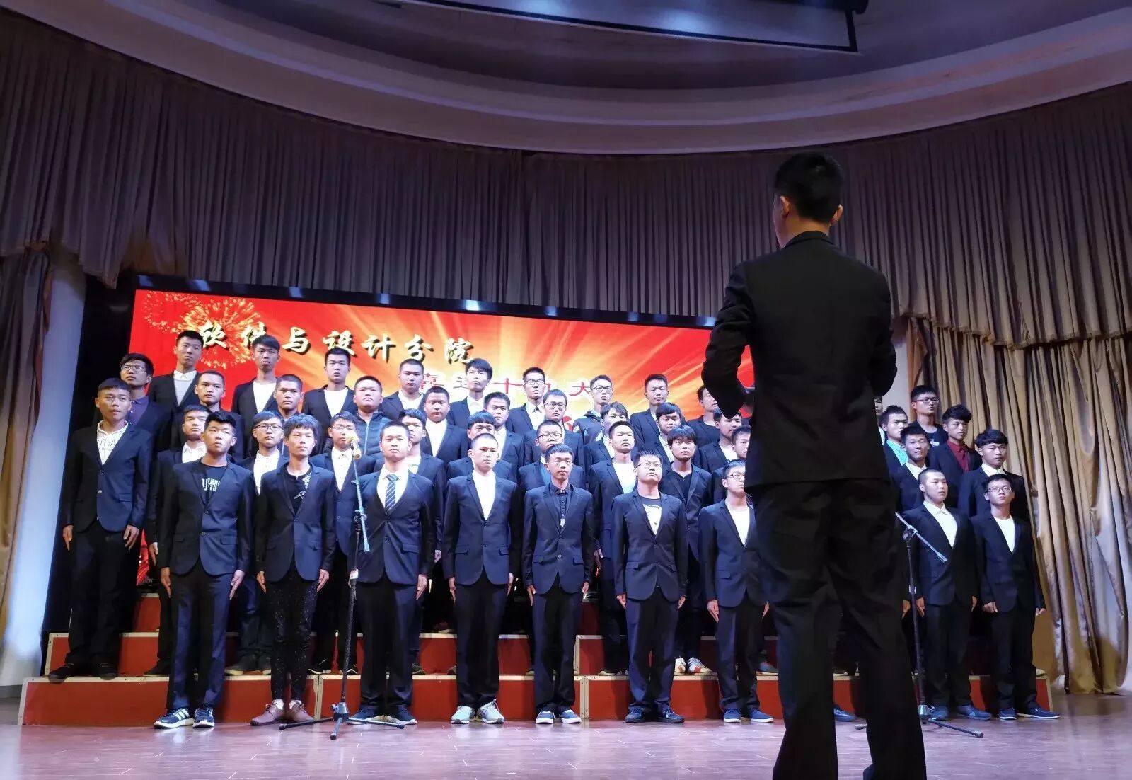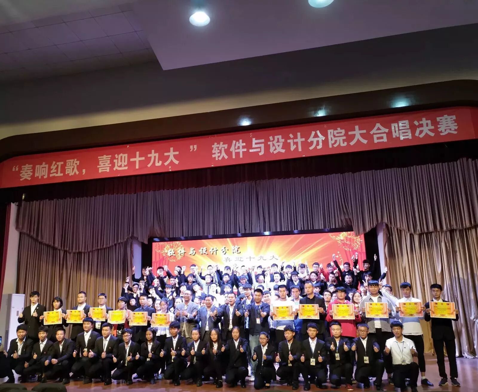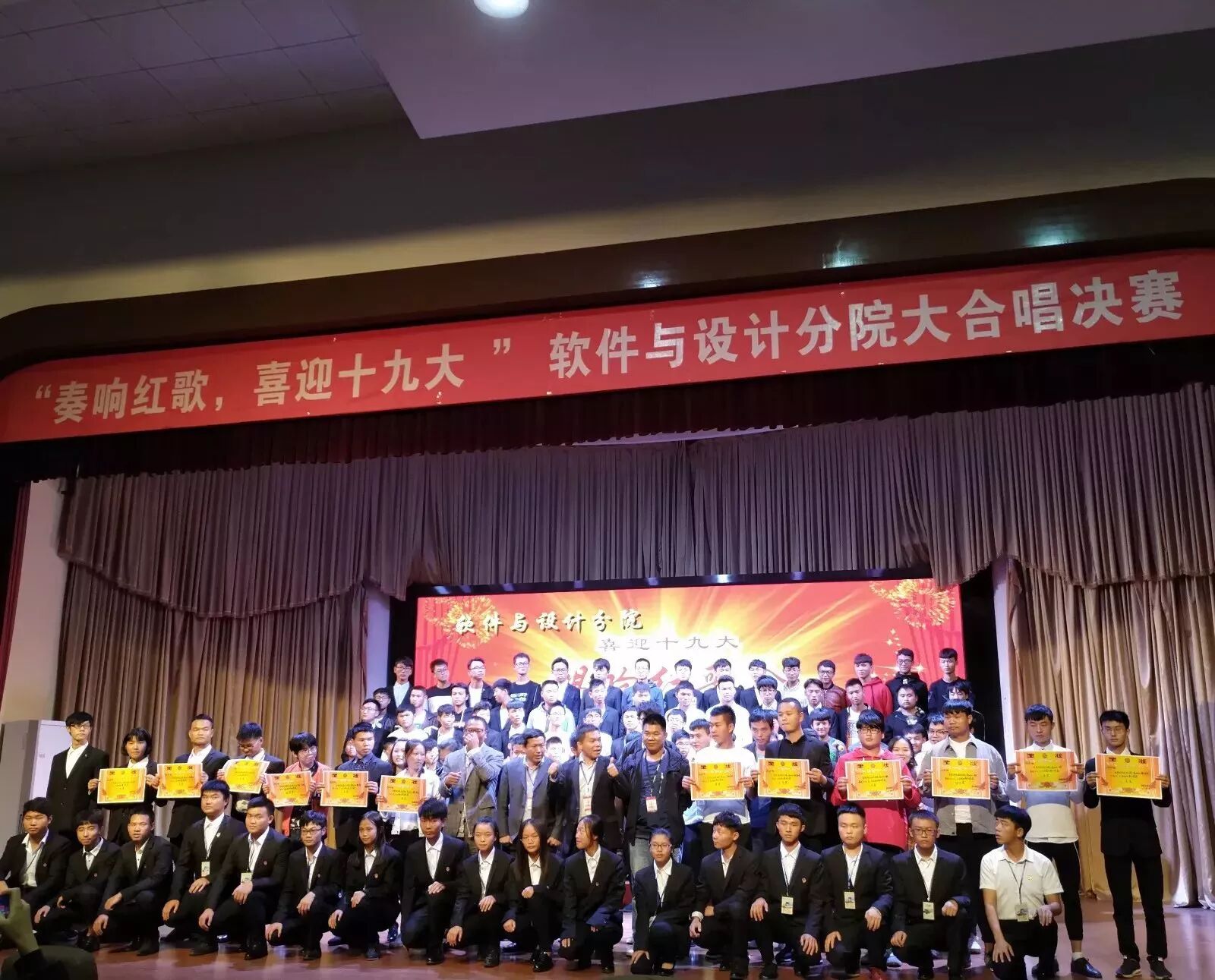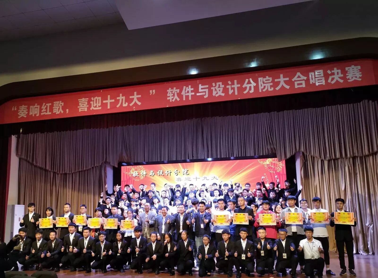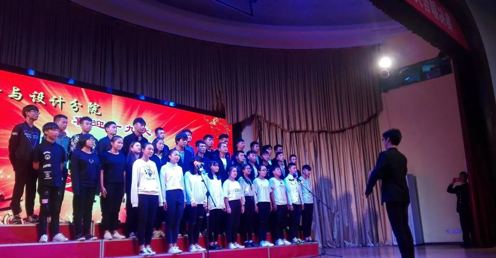 2017年10月12日晚,经分院学生会主办的2017级新生“奏响红歌,喜迎十九大”大合唱比赛在学术报告厅顺利举行,此次参与大合唱比赛的对象是2017级全体新生。