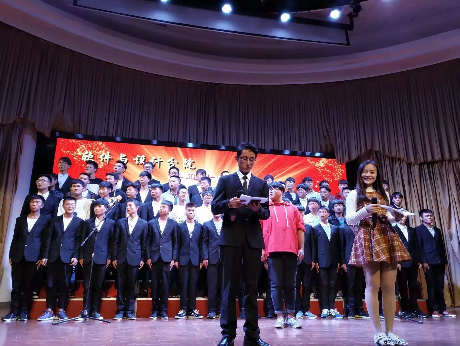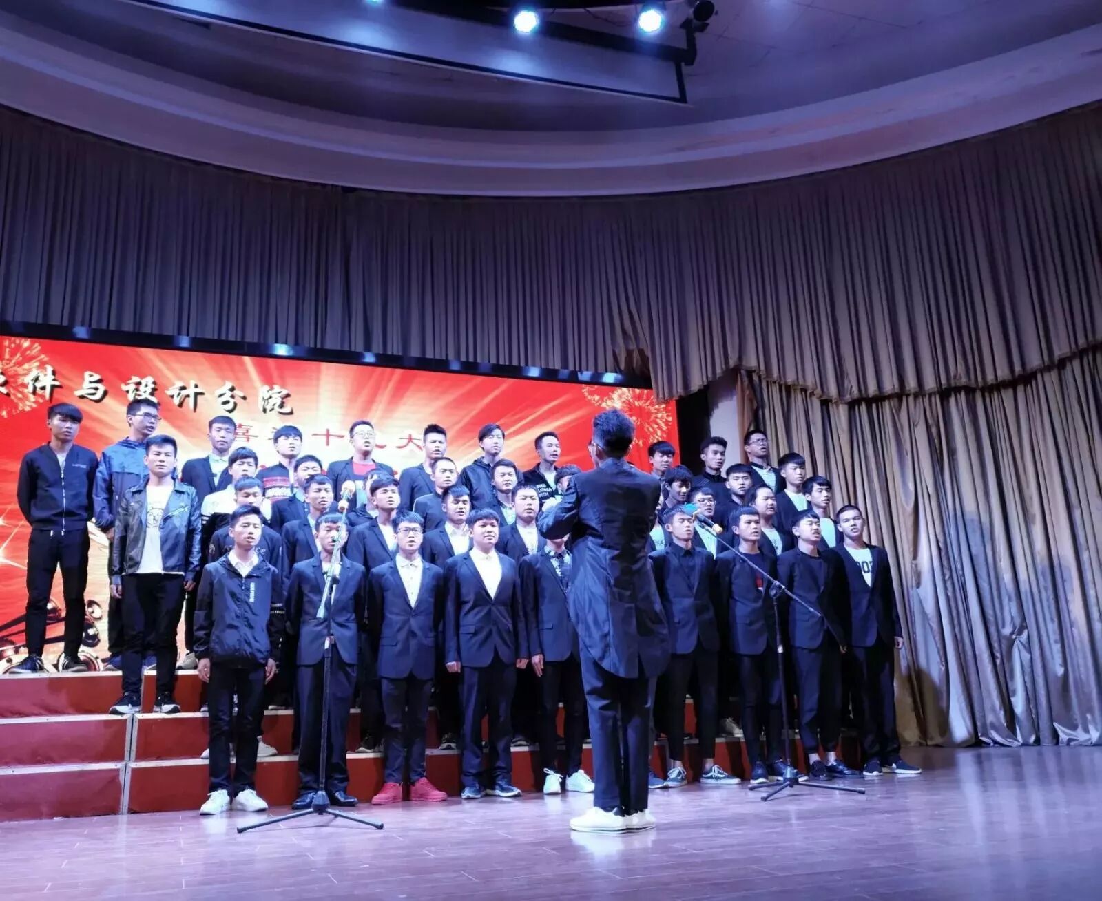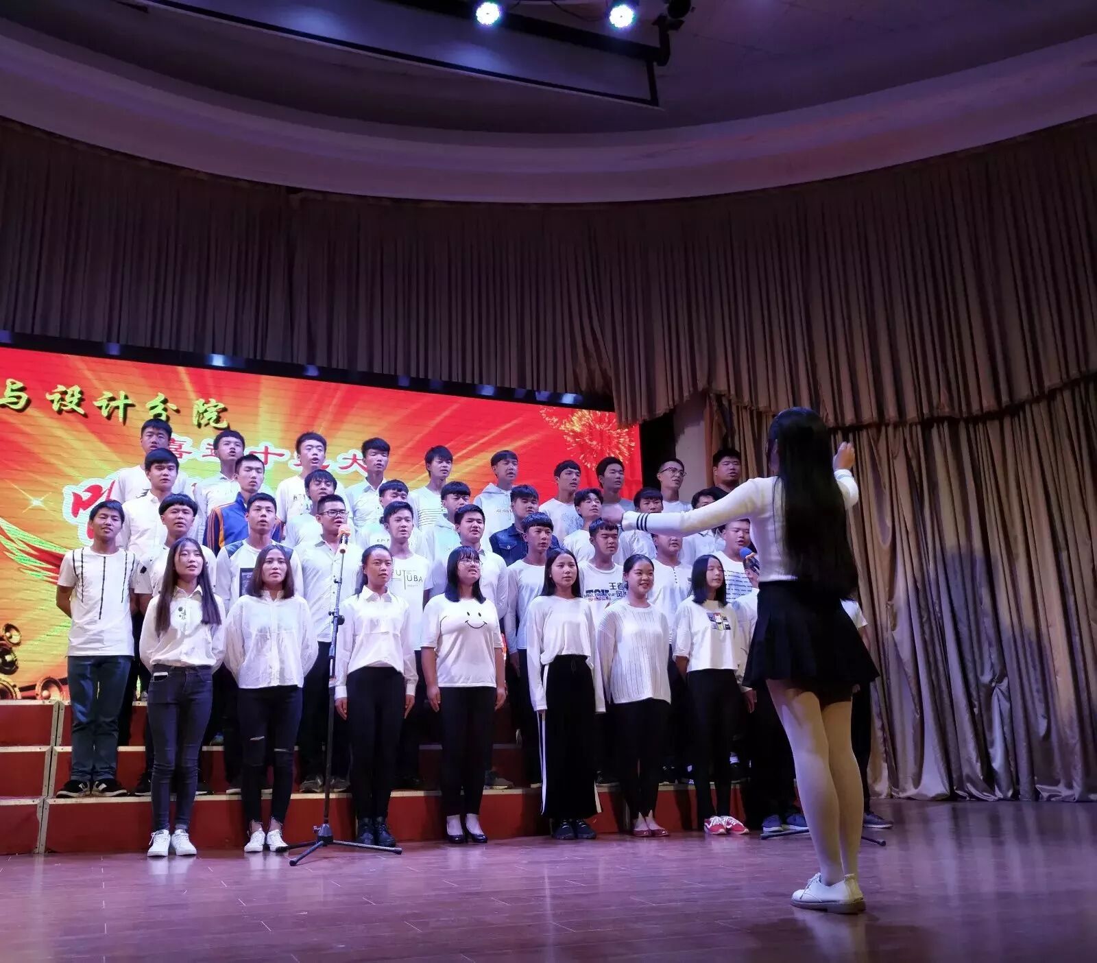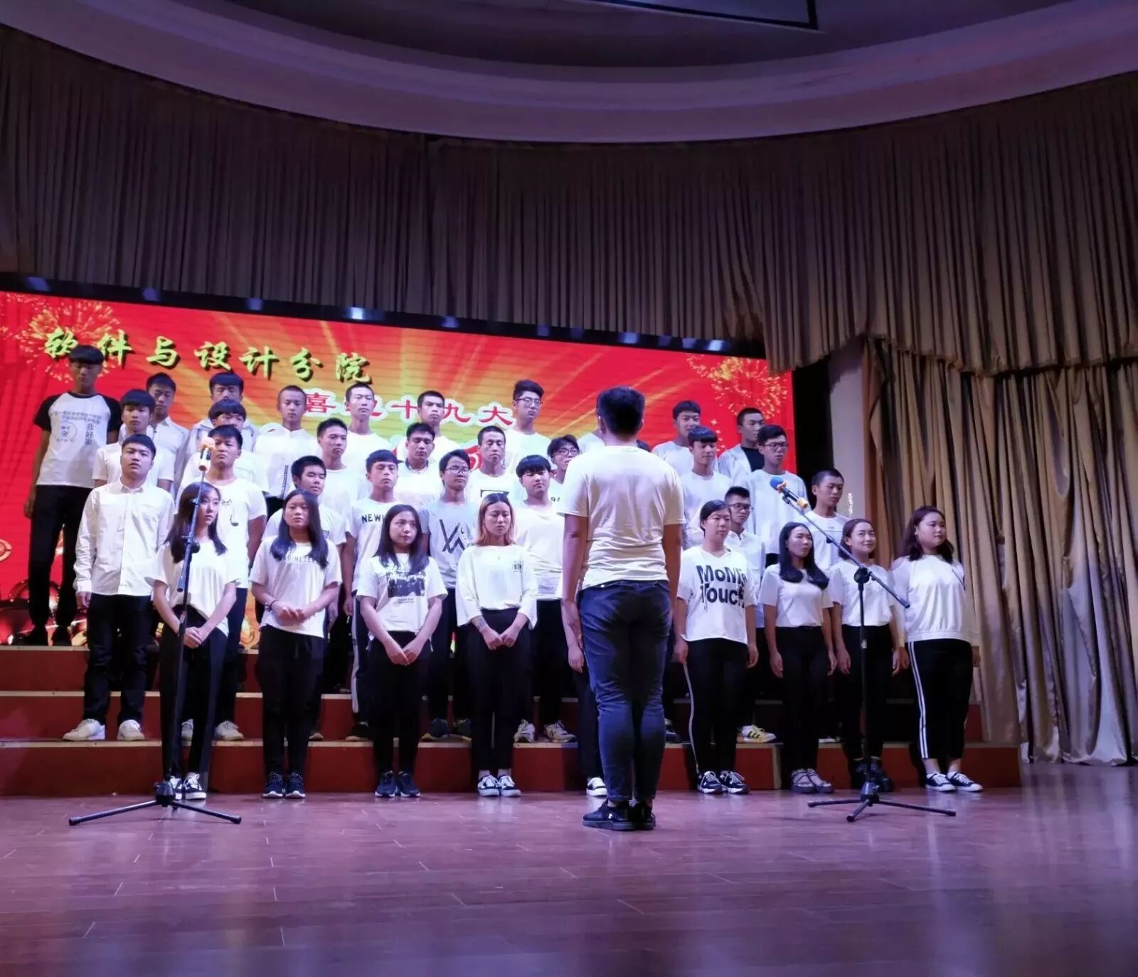 2017年10月12日晚,经分院学生会主办的2017级新生“奏响红歌,喜迎十九大”大合唱比赛在学术报告厅顺利举行,此次参与大合唱比赛的对象是2017级全体新生。