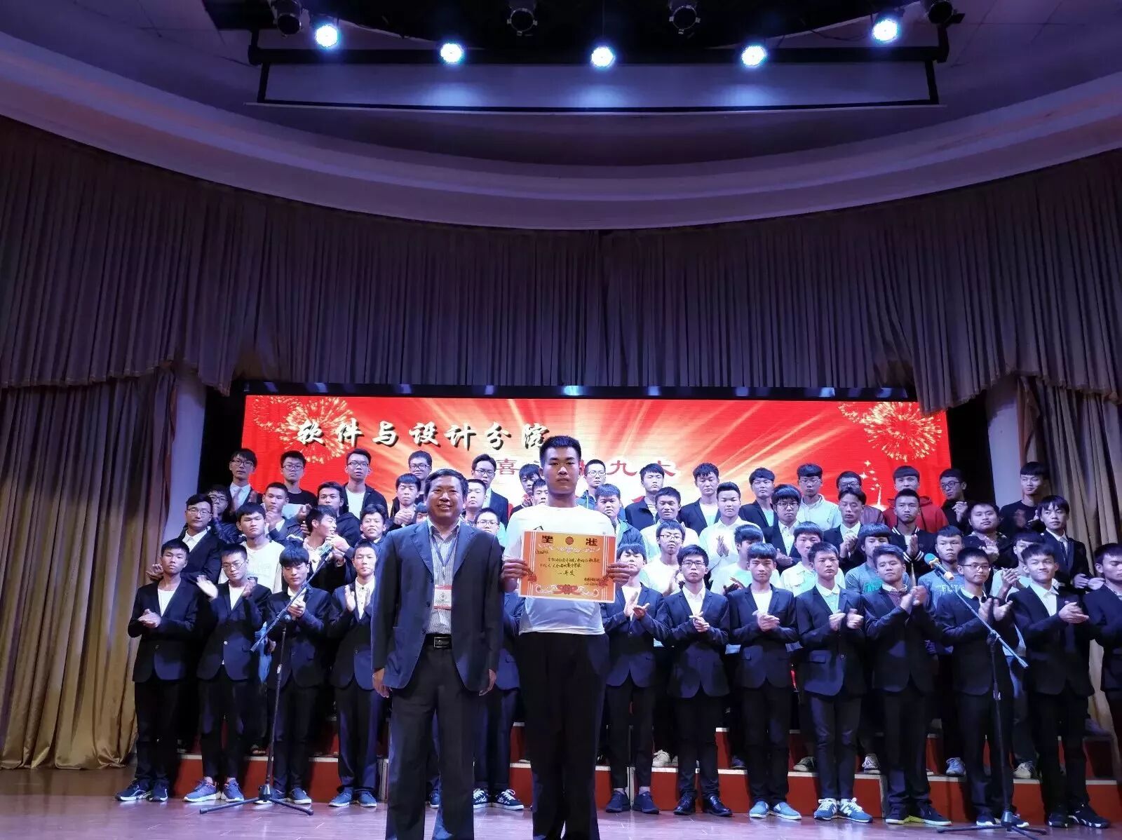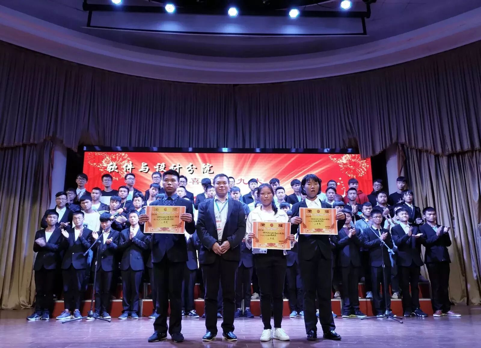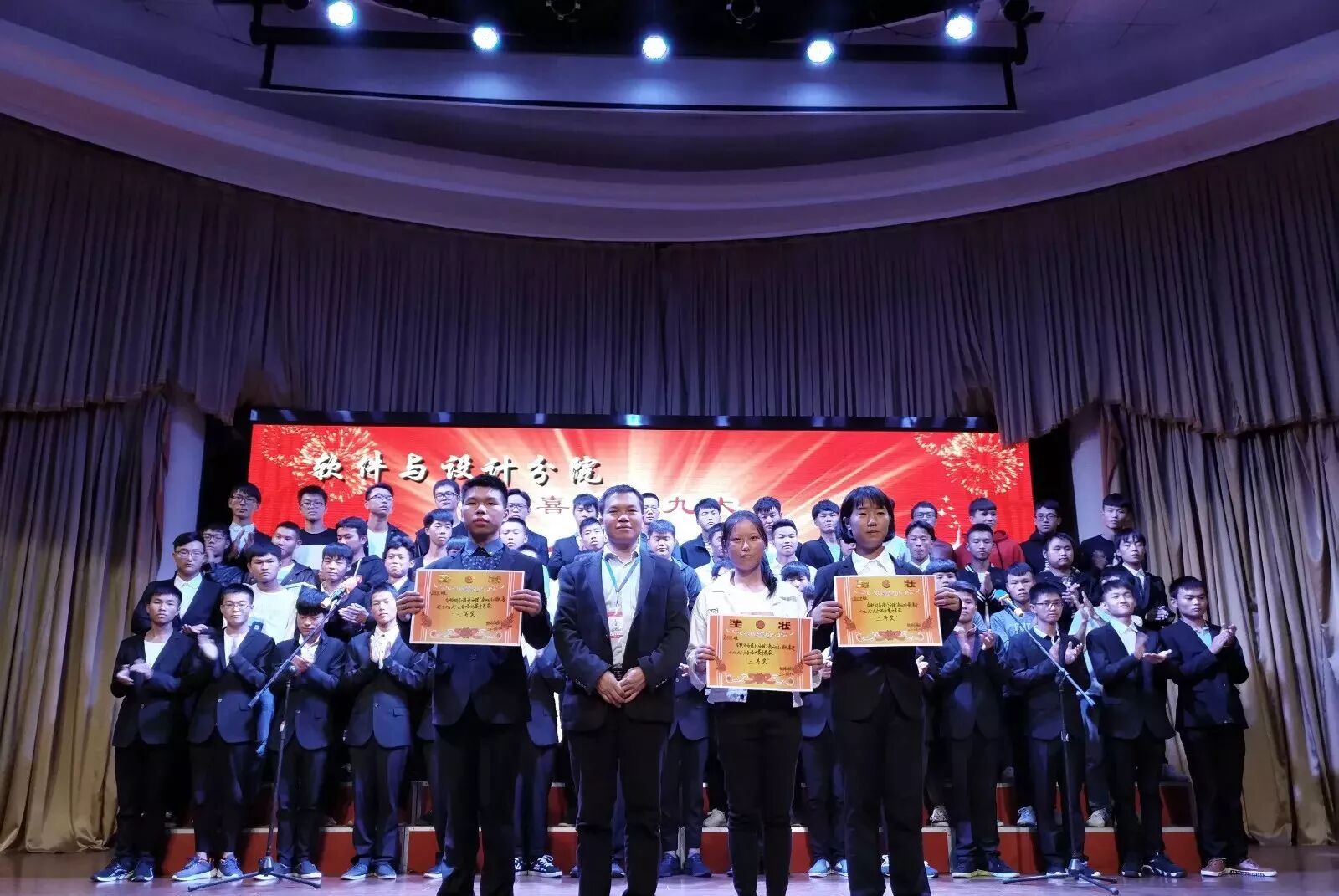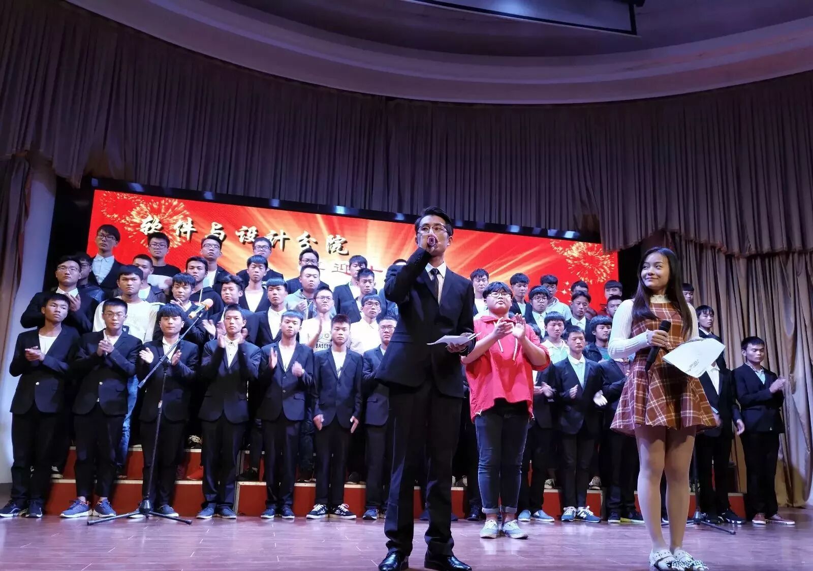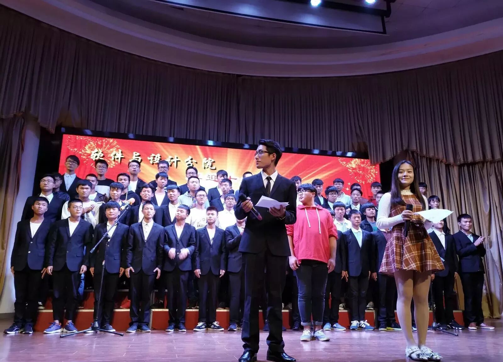 2017年10月12日晚,经分院学生会主办的2017级新生“奏响红歌,喜迎十九大”大合唱比赛在学术报告厅顺利举行,此次参与大合唱比赛的对象是2017级全体新生。