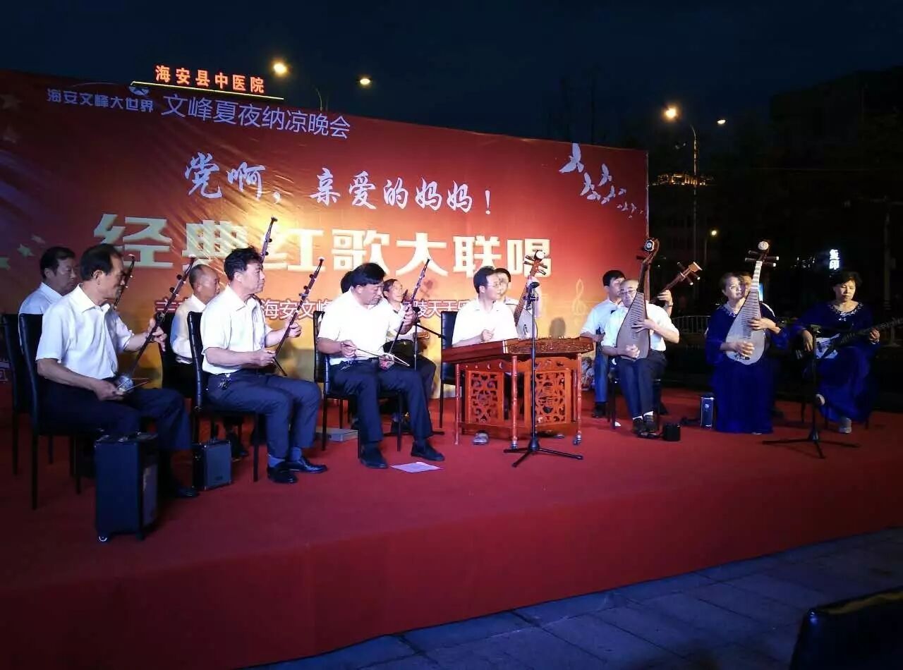 喜洋洋、紫竹调、杨柳青.....海陵天天乐艺术团登场,几首耳熟能详的器乐演奏拉开了红歌大联唱的序幕。