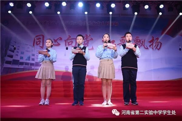 校管乐团演奏的《走向复兴》,拉开了此次活动的序幕。此次教育活动主要由回顾历史、新团员入团仪式、班级组合唱比赛和党员教师重温入党誓词、师生同唱《不忘初心》五部分组成。
