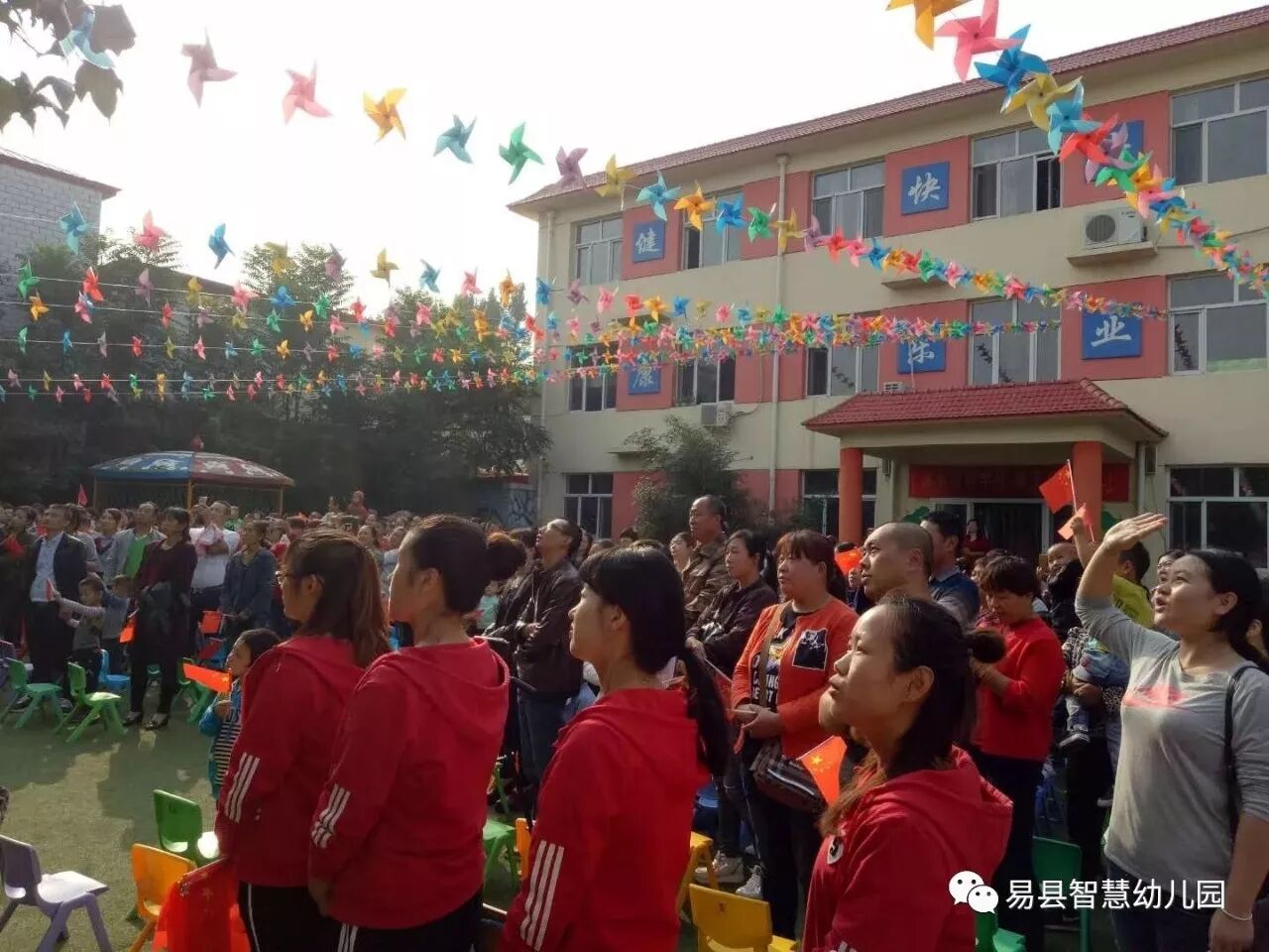 之后,全体小朋友合唱《红太阳,照山河》,庆祝祖国妈妈的生日