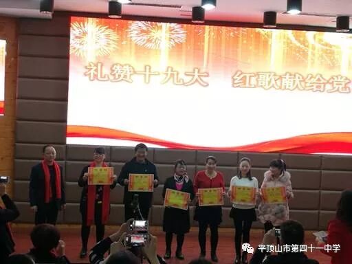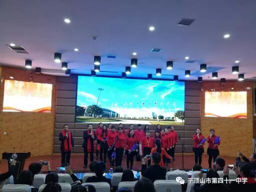 为了弘扬革命传统,培育民族精神,丰富学校教职工的文化生活;2017年12月29日星期五下午,市四十一中举办了教职工“礼赞十九大,红歌献给党”第一届红歌大赛。