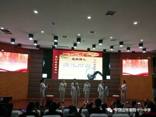 紧随其后出场的,是九年级数学组大合唱《龙的传人》。这个队伍一出场,就吸引了大家的目光,两个大鼓的加入,配上铿锵有力的合唱,气势磅礴,如龙飞腾。把现场气氛推向了高潮!
