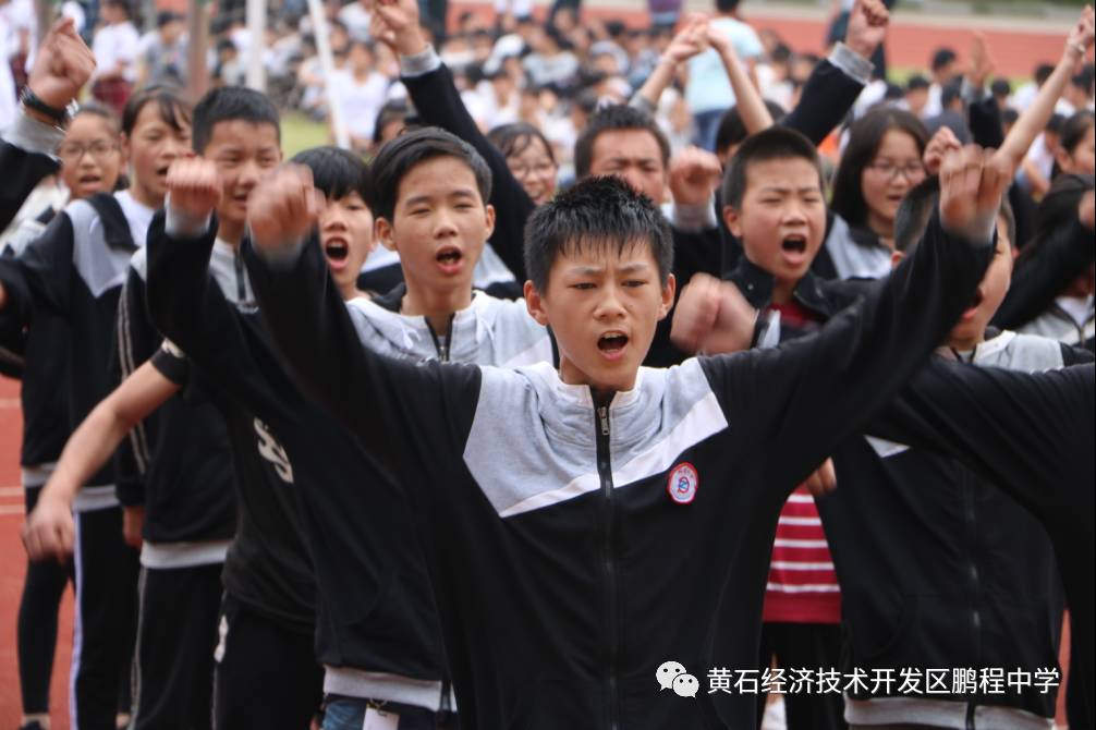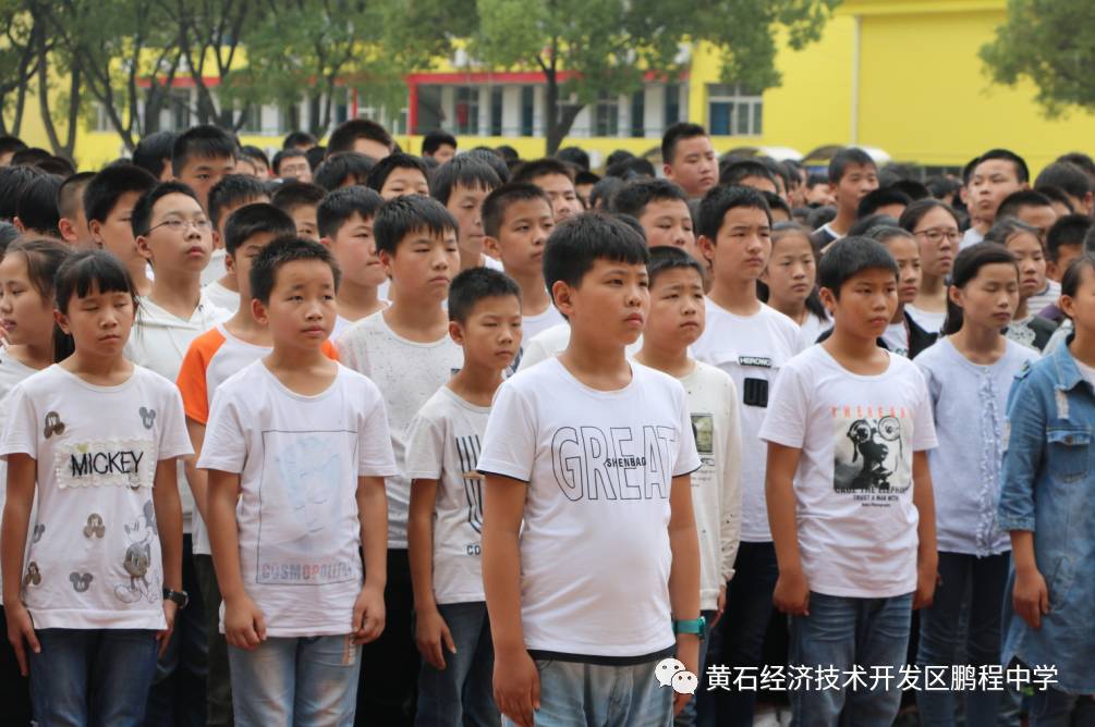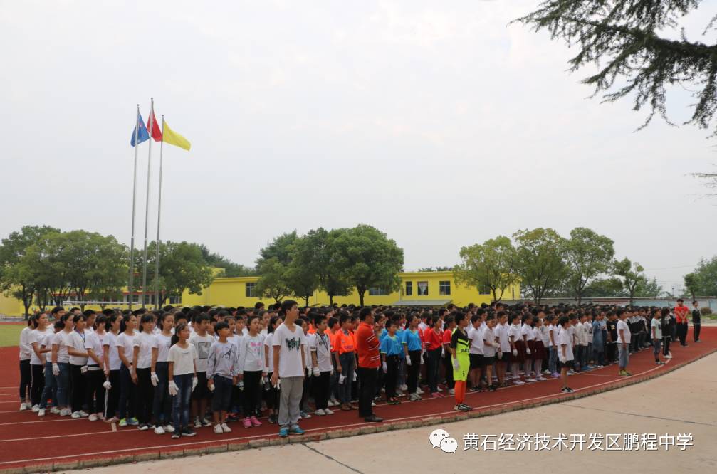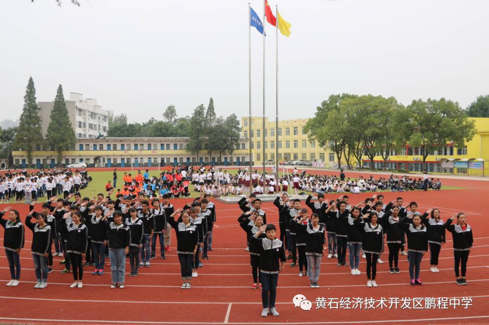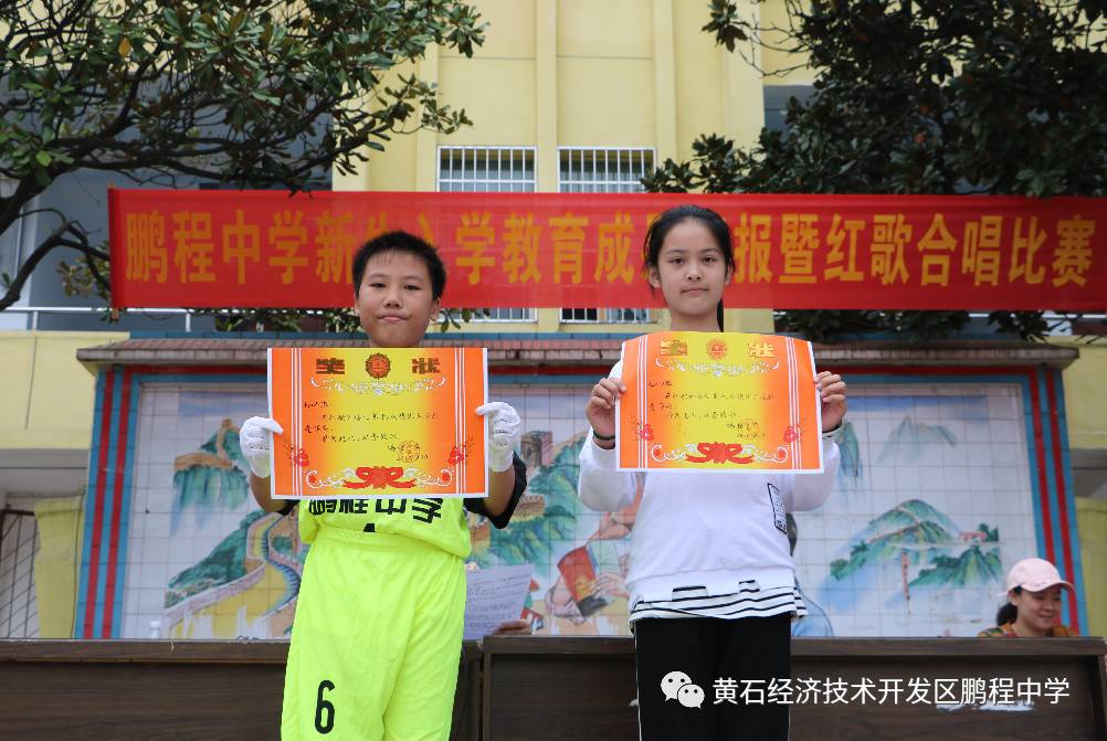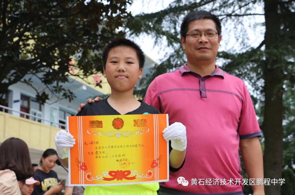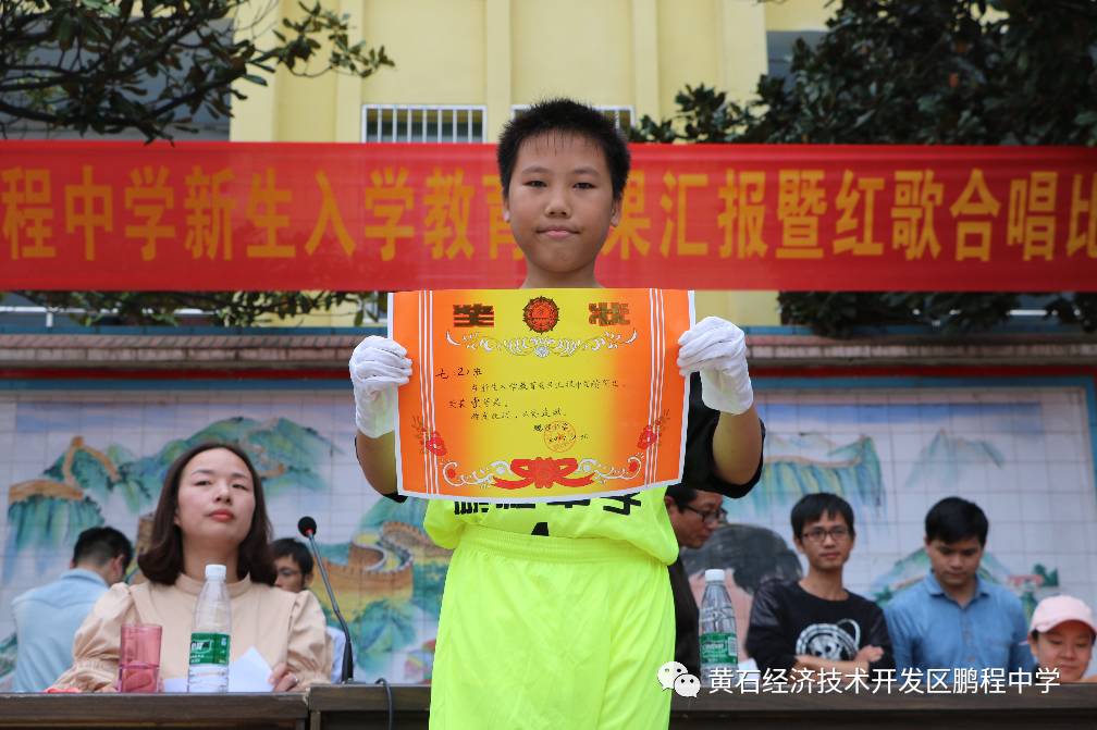 鹏程中学2017新生入学教育成果汇报比赛获得一等奖的班级留影