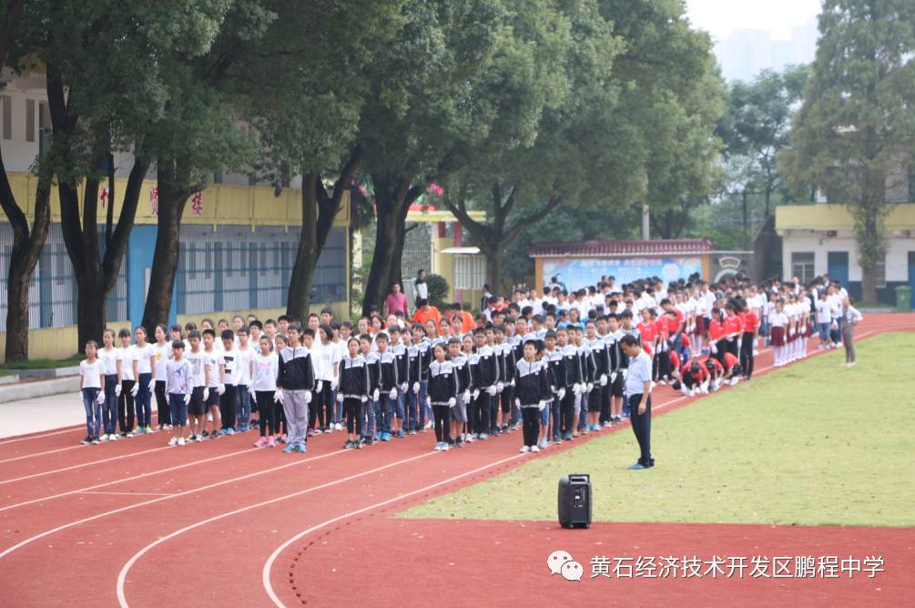 为了让七年级新生更快更好地适应初中的学习和生活,规范自己的言行,养成良好习惯,迈好中学生活第一步,同时为迎接国庆68周年及党的十九大,大力弘扬爱国主义精神,,丰富校园生活,增进班级凝聚力,进一步形成团结、合作、乐观、积极拼搏等良好的精神品质,9月30日下午,鹏程中学全体师生欢聚在操场上隆重举行2017新生入学教育成果汇报暨全校红歌合唱比赛。大会由夏晓霞老师主持。