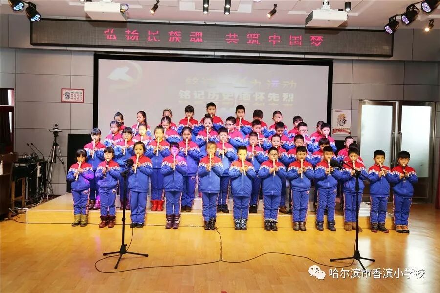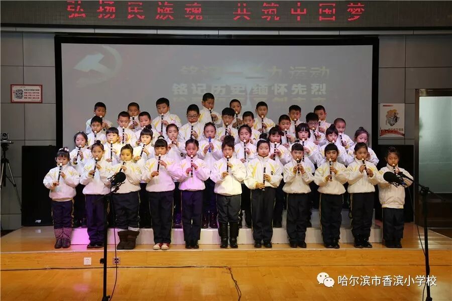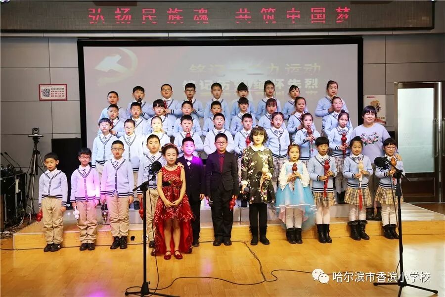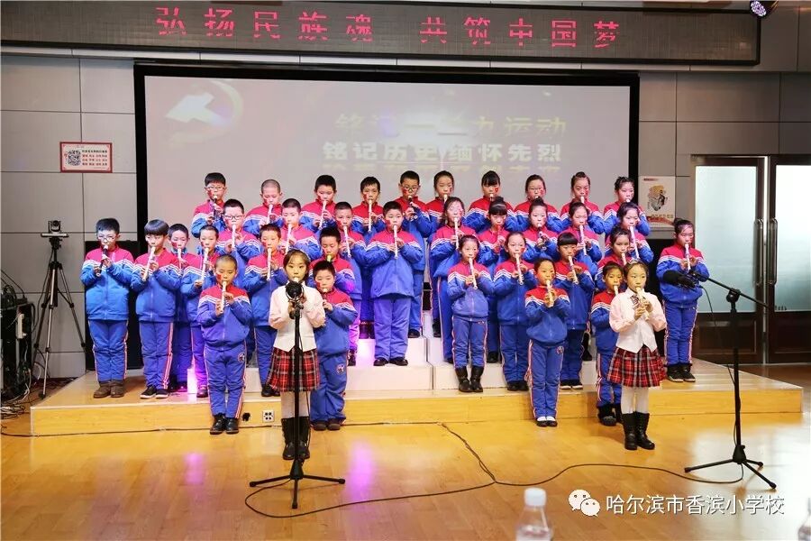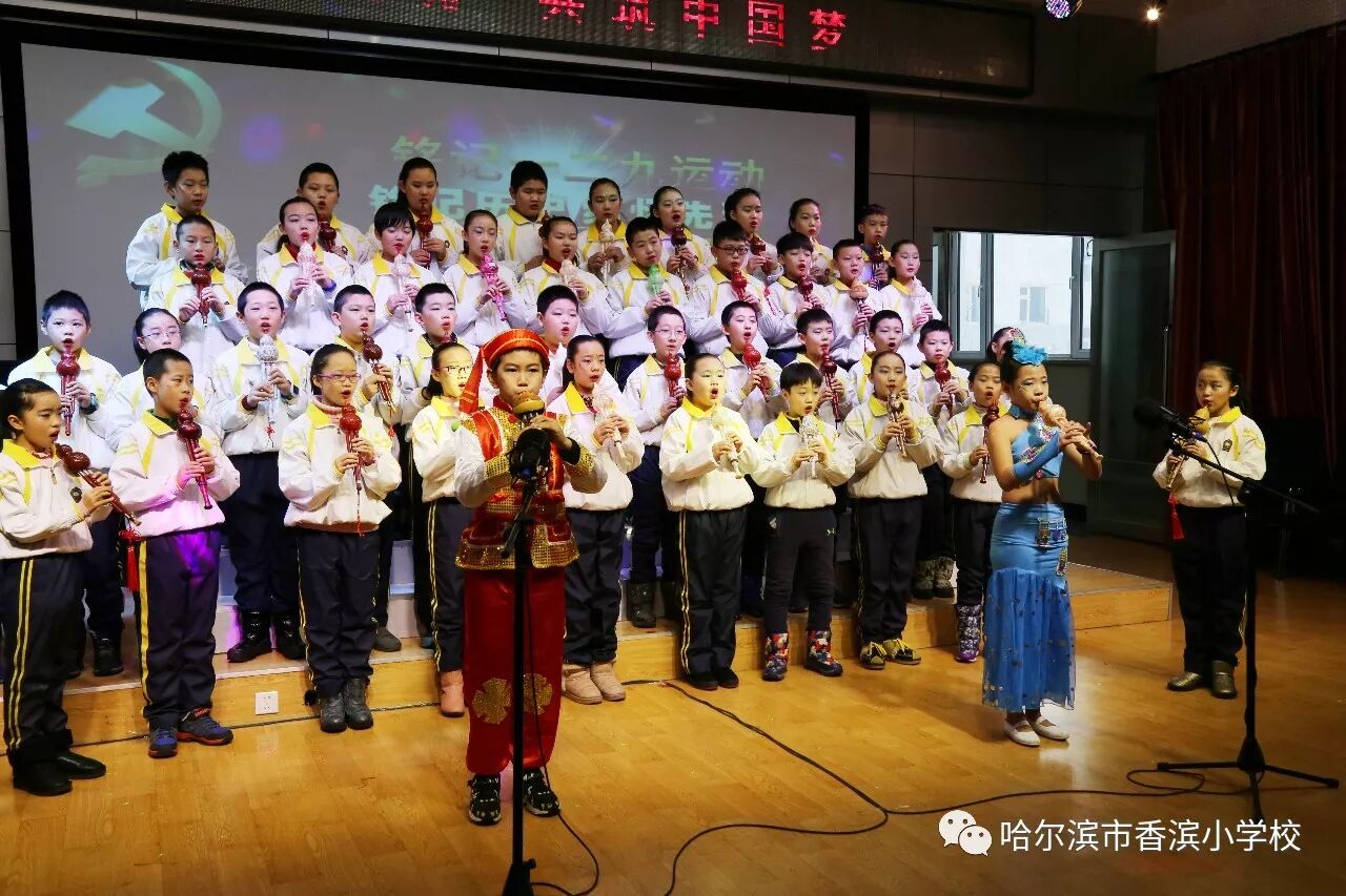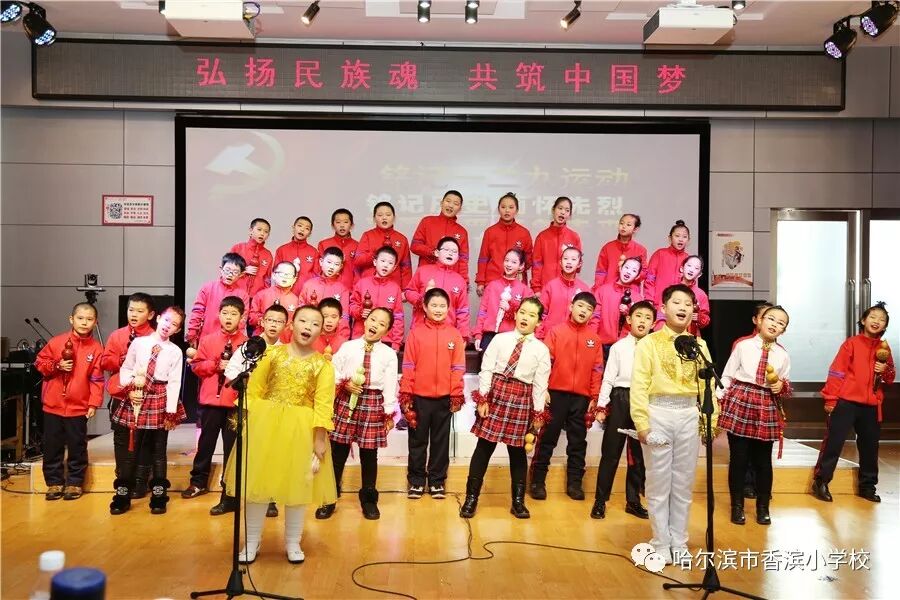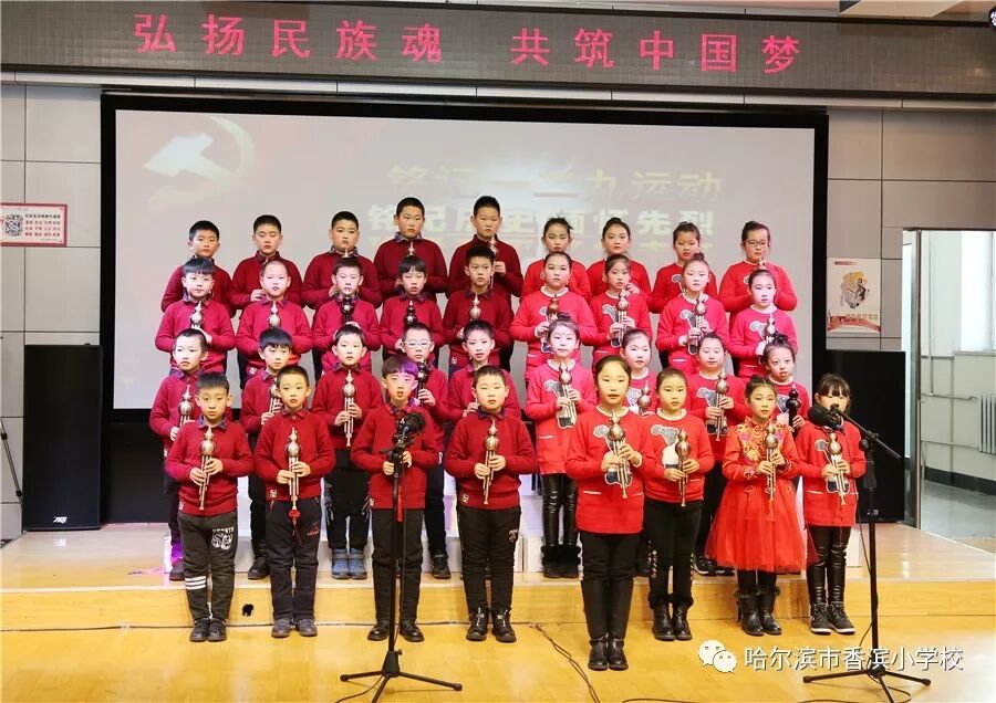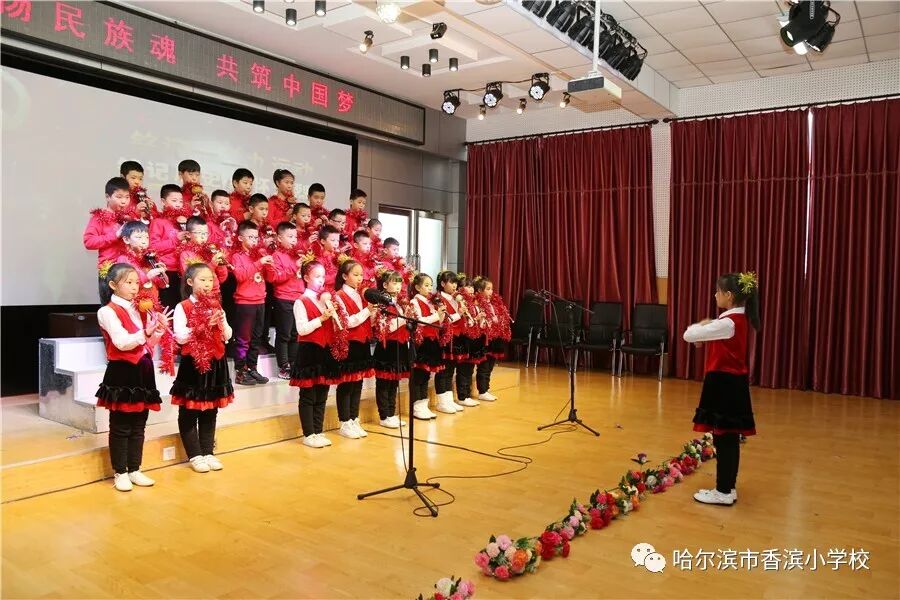 12月15日上午,香滨小学校在三楼多功能厅历时3个半小时隆重举行了以“弘扬民族魂 共筑中国梦”为主题的一二·九大合唱。比赛按照五、一、二、三、四学年的顺序进行,一学年演唱两首歌曲、二——五学年演唱一首歌曲、演奏一首乐曲。