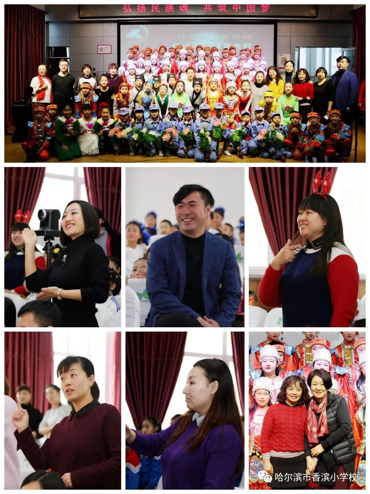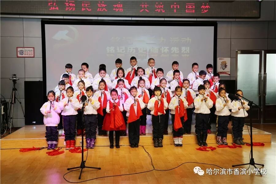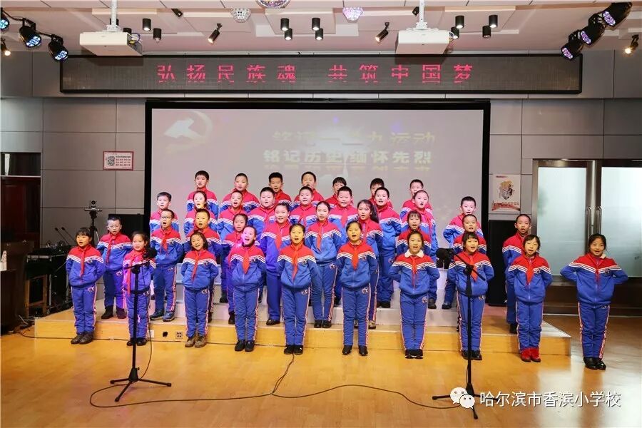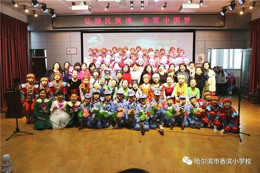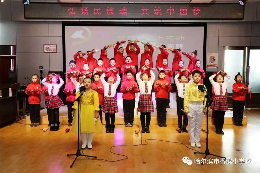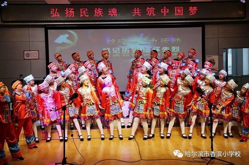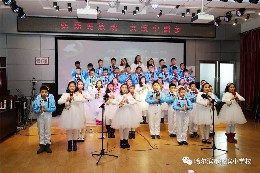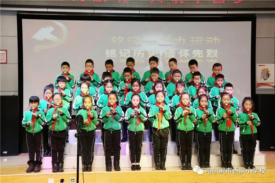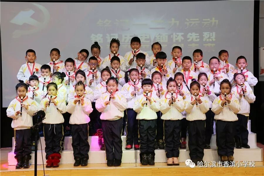 12月15日上午,香滨小学校在三楼多功能厅历时3个半小时隆重举行了以“弘扬民族魂 共筑中国梦”为主题的一二·九大合唱。比赛按照五、一、二、三、四学年的顺序进行,一学年演唱两首歌曲、二——五学年演唱一首歌曲、演奏一首乐曲。