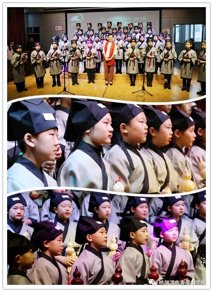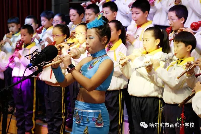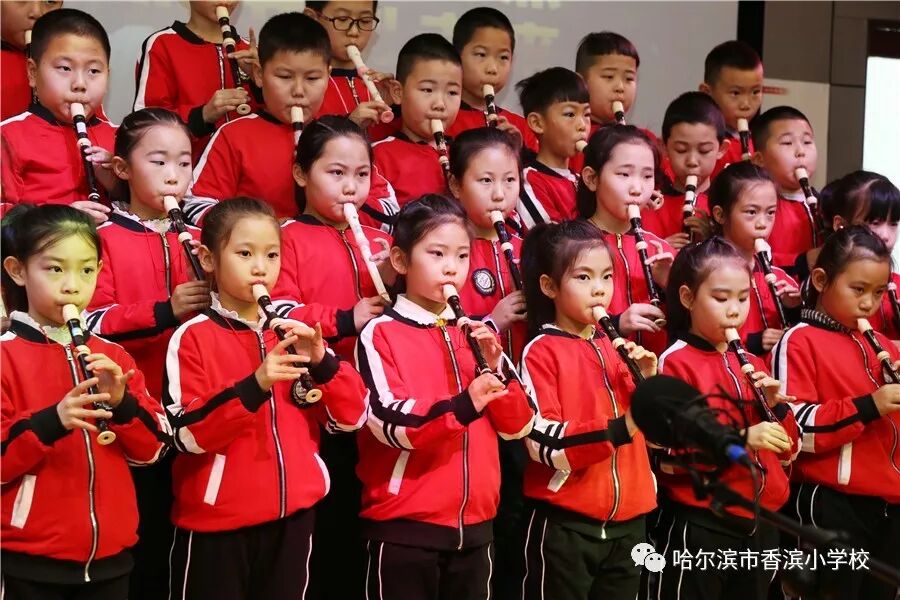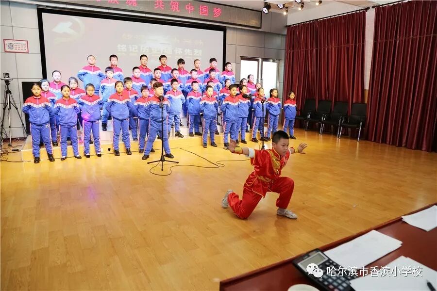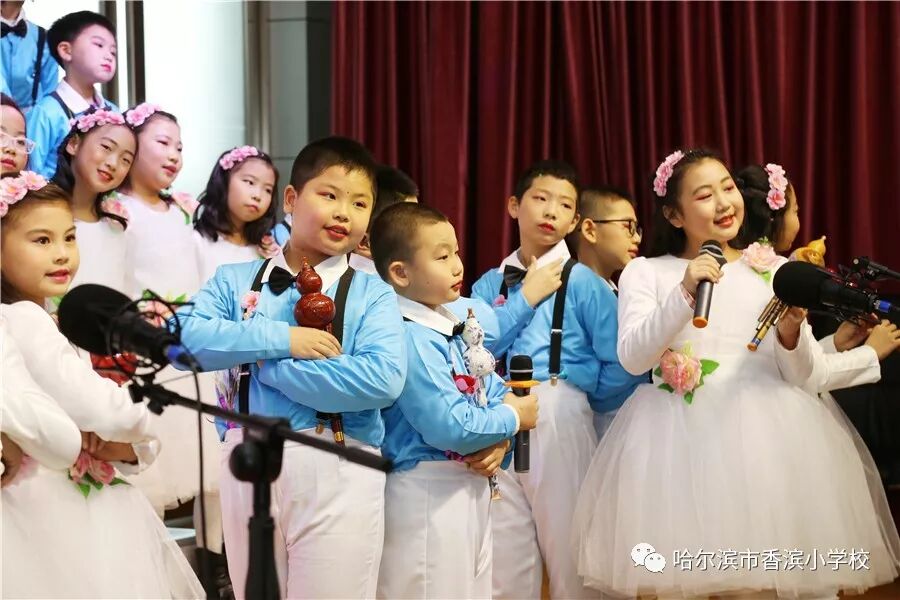 比赛时,气氛热烈,高潮迭起。7点50分五年五班最先登台表演,他们穿上汉服,表演了《学堂乐歌》把歌曲《送别》与《论语》巧妙的结合,以说唱的形式,把学生五年来在香滨小学的校园生活一一回顾,接着五年四班演唱了巴赫的《小步舞曲》,五年三班《唱支山歌给你听》五年二班《一二三四歌》五年一班《保卫黄河》,各个班级各有特色,弘扬传统文化,再现红色经典,是他们的宗旨。