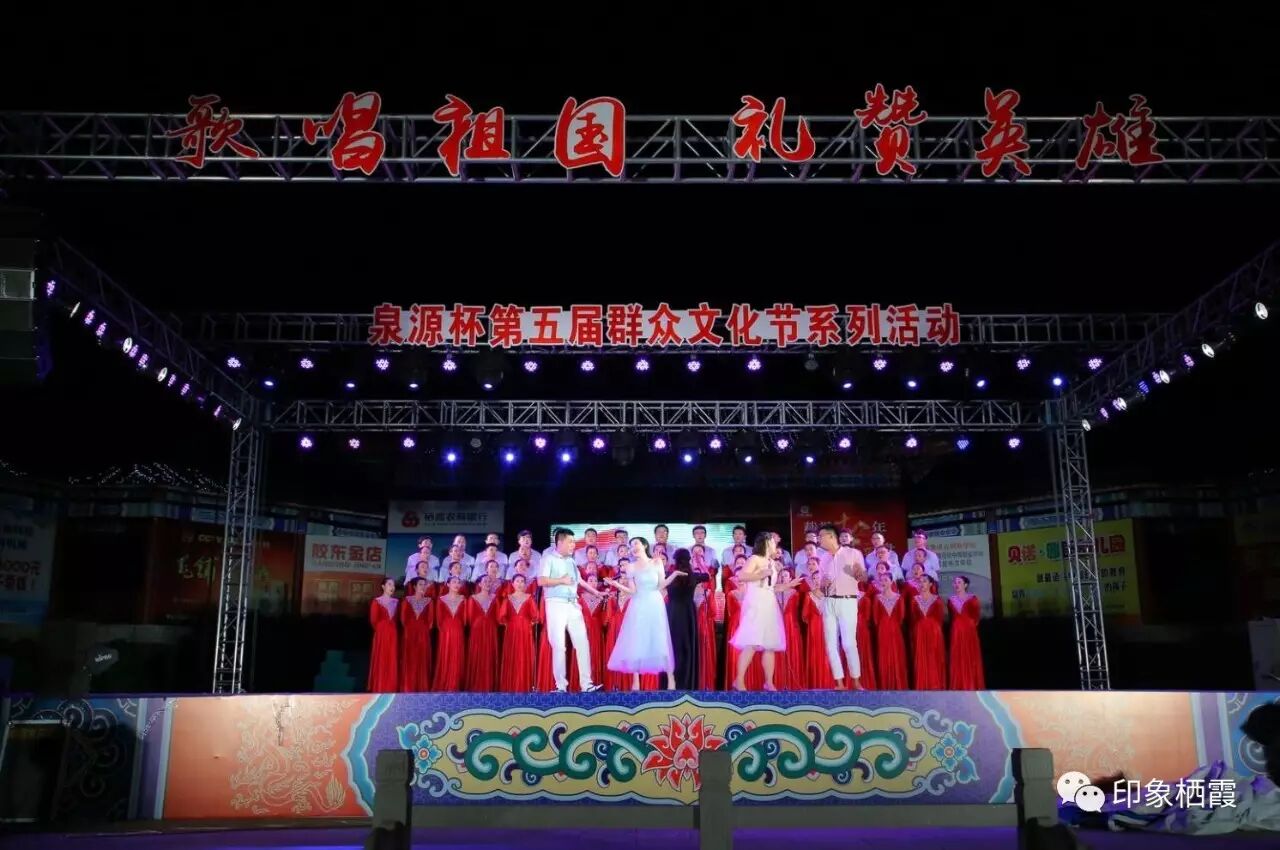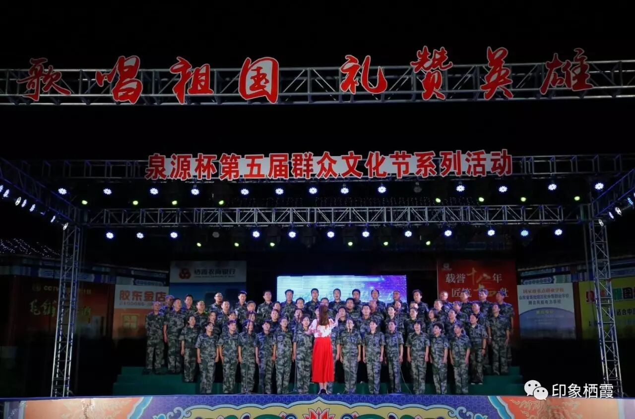 为迎接党的十九大胜利召开,纪念香港回归祖国20周年、,推动全市群众文化活动深入开展,8月24日晚,栖霞市委宣传部、、团市委、文广新局、广播电视台联合举办以“歌唱祖国•礼赞英雄”为主题的大合唱比赛活动。