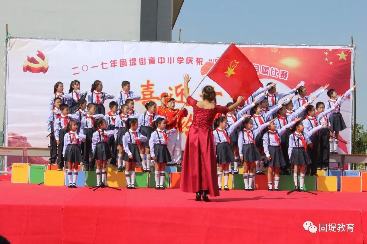 在国庆节到来的日子里,,固堤街道为了庆国庆,迎接十九大,举办了这场合唱比赛。