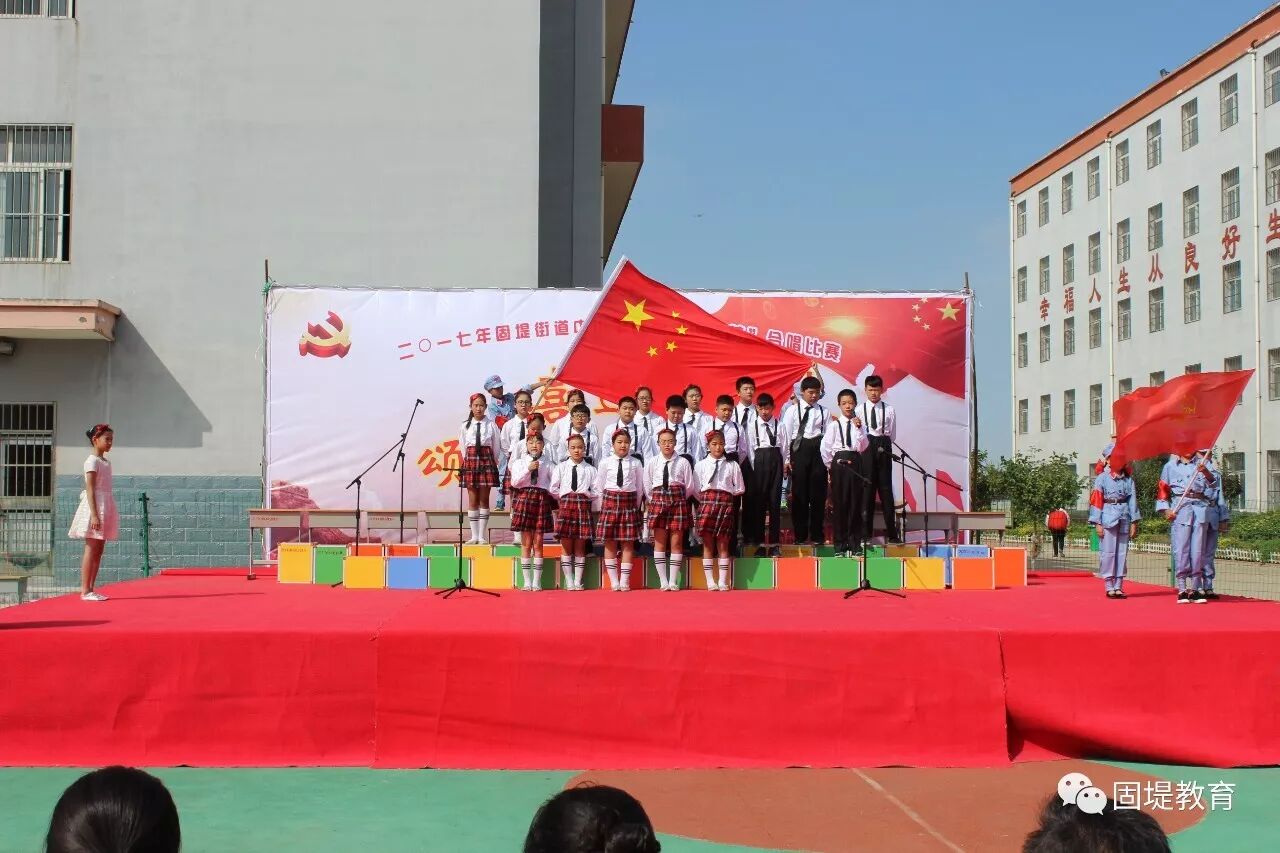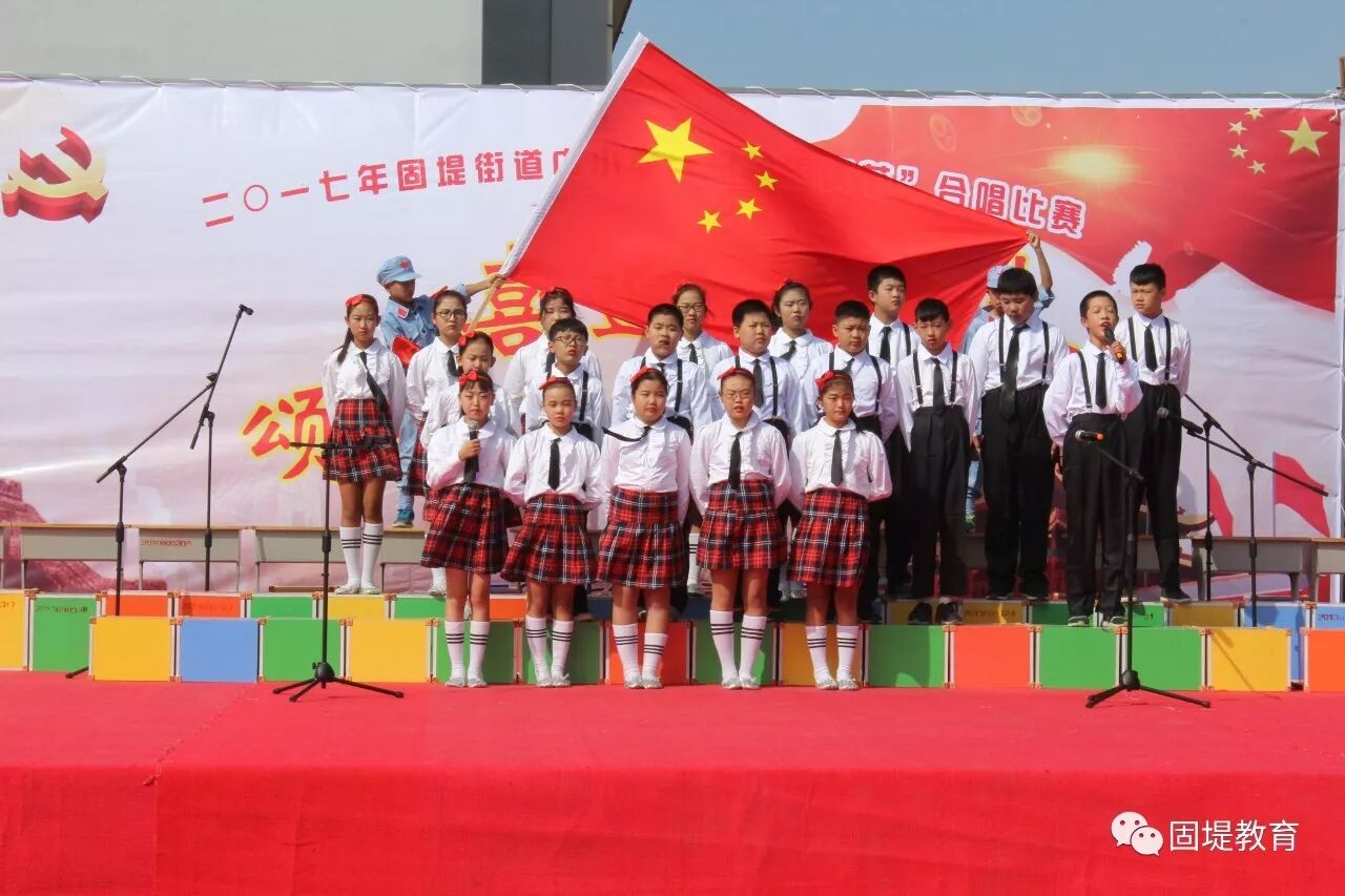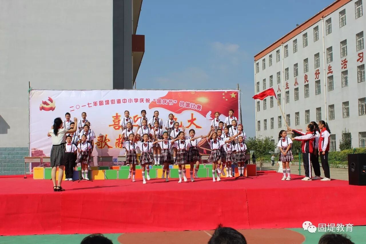 2017年9月28日上午,固堤街道固堤小学操场内,歌声飘扬,固堤街道《喜迎十九大,颂歌献给党》合唱比赛正在进行。