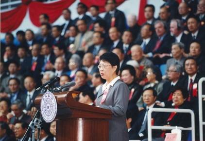 2001年,在清华建校90周年庆祝大会上,朱凤蓉将军作为杰出校友代表在大会上发言,
