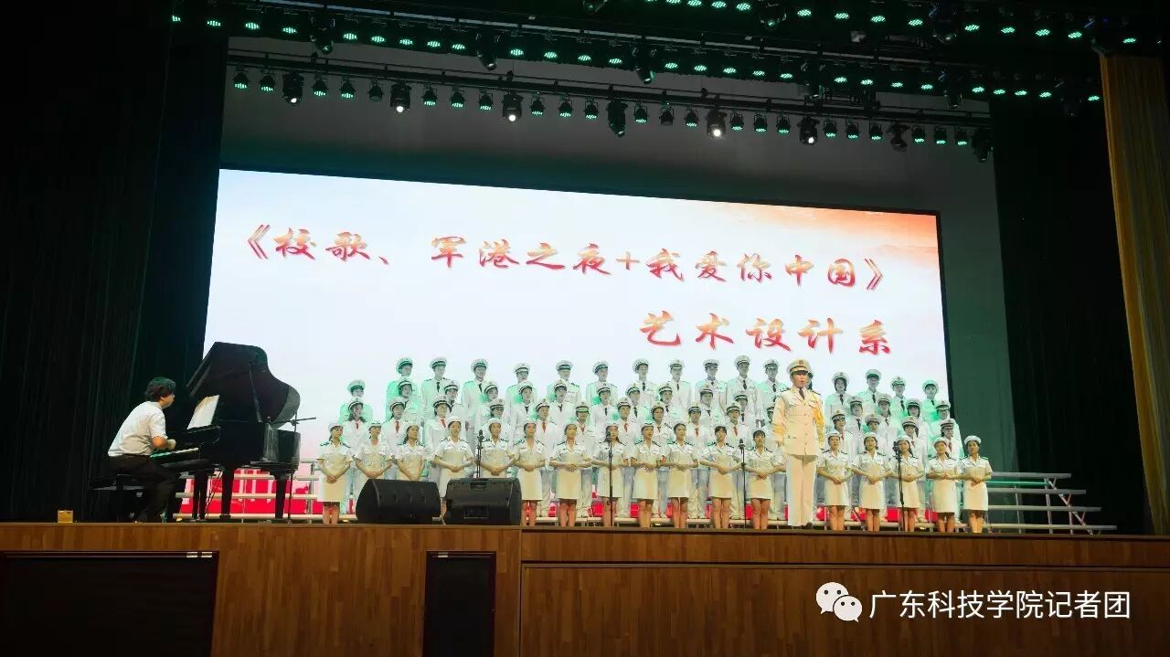 艺术设计系参赛队带来《校歌、军港之夜+我爱你中国》,嘹亮的歌声、精彩的表演让观众印象深刻。